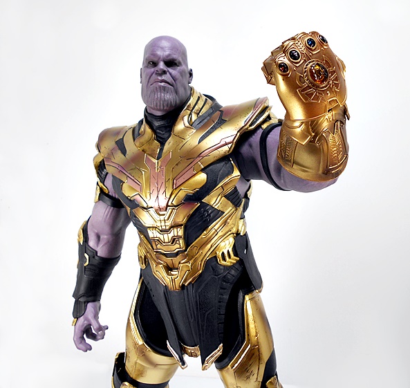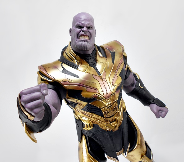Since I’m between waves of Marvel Legends, I’m going to divert my attention elsewhere on this Marvel Monday, and shift the spotlight to Hot Toys! Wow, it’s been a while since I reviewed a Hot Toys Marvel figure. I still have a few more Marvel Hot Toys to review, a few on pre-order, but my confidence in the future of the MCU has been waning, and I have a feeling that my days of collecting Hot Toys Marvel may be drawing to a close. It makes me a little sad, but my wallet very happy. Speaking of which, let’s take a look at The Mad Titan himself, who recently snapped his fingers and made half my toy budget for the month disappear! I passed on Hot Toys Thanos twice before. The Guardians of the Galaxy version with the throne looked great, but it was also a little small and I didn’t have the scratch for it back then. It was a shame because it’s the only Hot Toys release from that film that I didn’t buy. Next came the Infinity War version, and that was an easy pass because his costume was just so boring that I couldn’t justify the price tag. This armored up Endgame one was obviously the one I was waiting for!