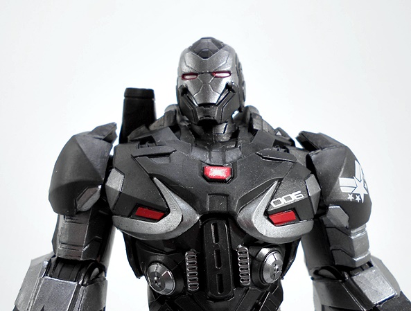 To borrow a phrase from Tony Stark, War Machine has been juicing or something because he’s gone and got himself all kinds of swole! Oh, and I absolutely love it. This is what War Machine ought to be about. A powerful, lumbering machine of… well, WAR GODDAMMIT! But besides filling out his silhouette, the design looks so damn sexy. Proportionally, this new suit throws a lot more weight into the lower arms and legs, making it look like a powerhouse. And there’s so much gorgeous detail on this guy. The chest features those two blade-like silver slashes accenting rectangular painted red lights, which serve to give the suit a wonderfully aggressive attitude. You get some circular silver hatches below that as well as some vents, which gives him a strong mech vibe. There are also all sorts of panel lines and bits and bobs sculpted into the back. I’ll note here how much I love the plastic they used for this figure. It’s thick and chalky and heavy. It just feels so solid!
