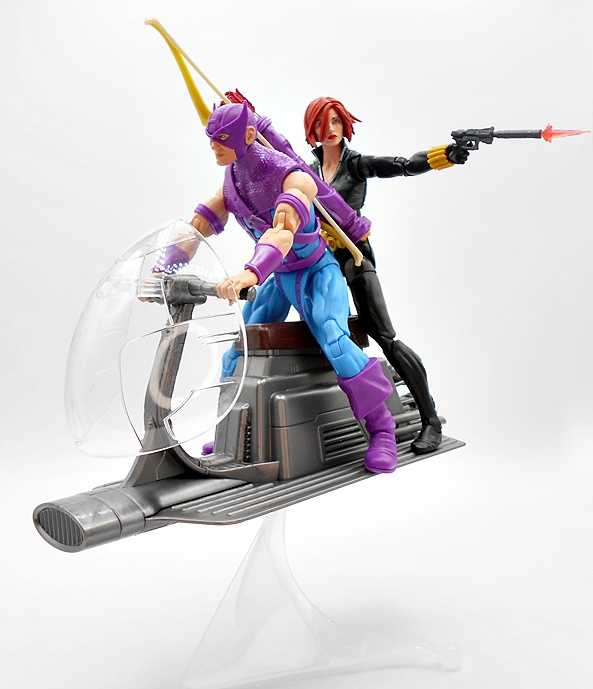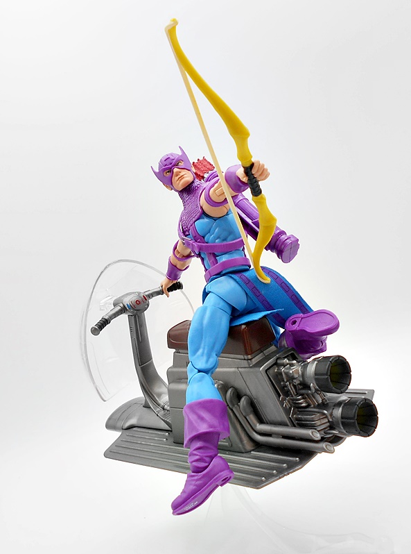 I think this is a nice little set, until you factor in the original MSRP of $50, which is just nuts! Even if you grant that these figures are going for $25 these days, I can’t come up with $25 for the Sky-Cycle. It’s got no moving parts, virtually no paint, and it doesn’t come close to other vehicle-figure bundles that we’ve seen retail for less. It’s no wonder the price has been slashed everywhere, including Hasbro Pulse, where it’s down to half price. I picked it up for $25 with free shipping, and I’m pretty happy about that, because I’ve been watching it for a while now. I do wish Hawkeye got a new quiver and a bow with an actual string, but other than that I think he turned out really well.