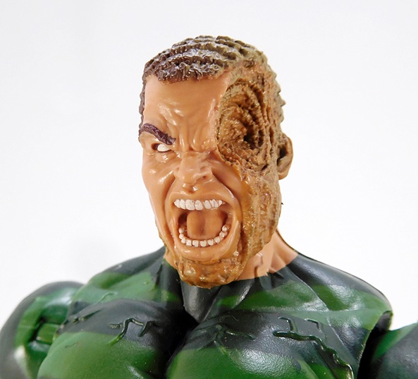 Each wing is made of three pieces, which are designed to collapse inward and spread outward, based on Sauron’s arm movements. These work really well, and are a huge improvement over wings we’ve seen on some past Marvel figures, especially in the smaller 4-inch scale. I’m looking at you, Vulture and Falcon! And like the body, these wing pieces are positively covered with textured detail. The membranes show filaments crossing and crisscrossing each other, and there are even little places here and there where the membrane has worn through. The coloring is also fantastic, with the same green used for the body near the skeletal frame, and the membrane itself transitioning to yellow.