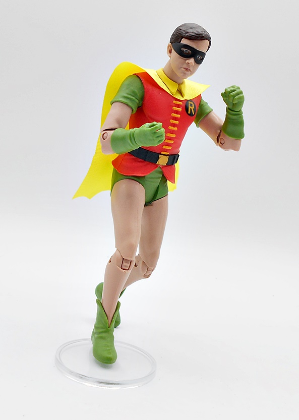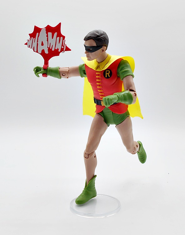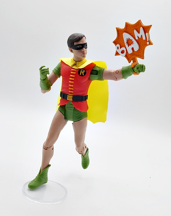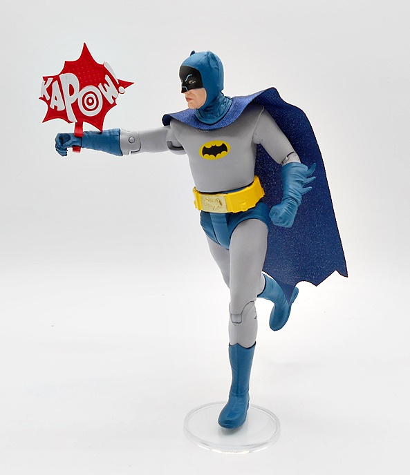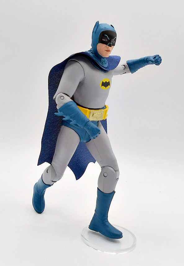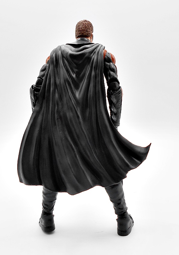 Yeah, this is nothing special, but I would fall short of calling it terrible. It’s not a figure that would hold up if sold on the pegs by itself, although I believe Spinmaster is selling single carded figures like this right now. You get minimal detail and some yellow paint on the belt and chest emblem. I will say that I can definitely see a little Keaton in that head sculpt, so that’s something. The eyes are pretty well done, but the ears are way too chonky. They went with a softgoods cape, which was smart because he’s got to go in the Batwing, but there’s very little effort here. It’s just a strip of black cloth that’s scalloped at the bottom and has a bewildering giant hole in the back. The whole thing is way too narrow, as it won’t even wrap around his shoulders like it should.