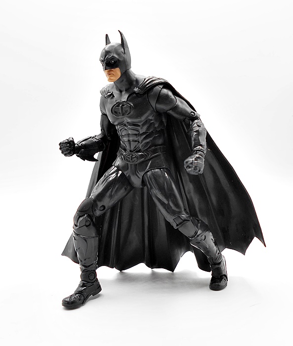 The articulation is decent. There’s a ball joint in the neck, ball joints in the hips, and rotating hinges in the shoulders, elbows and knees. Heck, there are even thigh swivels. Still, nothing in the waist, wrists, or ankles. I’ll give Spinmaster props for giving him more articulation than he needed, as a simple 5-POA figure would have been fine to slide into the cockpit. As a kid, I would probably have had a blast carrying a figure like this around in my pocket all day, but as a collector it’s not really noteworthy other than to have him pilot the Batwing. Also, there’s the whole Batman Returns angle. I realize there are differences in the suits used between the two films, but if you handed me this figure out of the blue, I couldn’t tell you which of the two films he came from, so yeah I’m still thinking it was a licensing issue. Let’s move on to the Batwing!