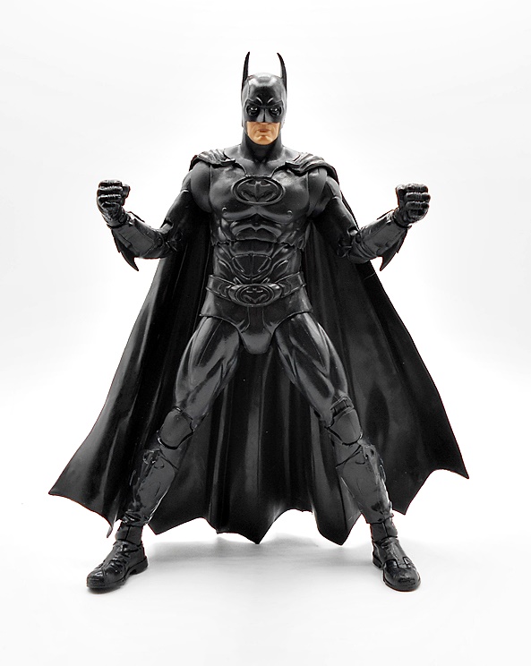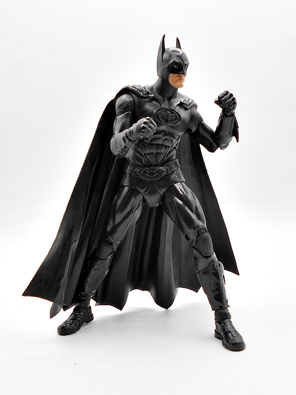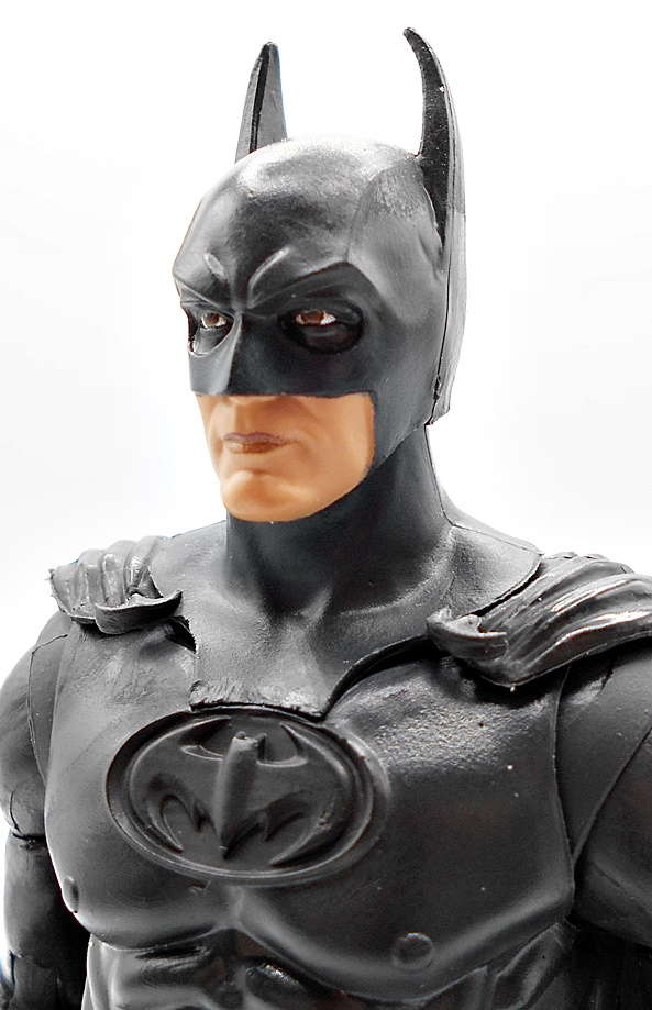 Yes, folks, this is the Batwing from the 1989 movie bundled with a Batman figure from the 1992 Batman Returns film and WHAT??? Why? What is going on over at Spinmaster? Why would you bundle a vehicle from one film and a figure from the next? Now, if I’m being honest, they probably could have just called the figure 1989 Batman and I wouldn’t have known the difference, but they didn’t and it’s all very, very weird. It’s got to be something to do with licensing rights. Like maybe they can do vehicles from the 89 film but not a 4-inch figure? Whatever the case, the goods come in a fully enclosed box and it’s really pretty ugly, so let’s not dwell on it. We’ll start with the figure.