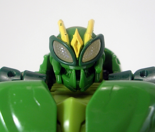 The head sculpt is excellent, and should satisfy fans of the Beast Wars series. At first, I though the sculpt was a little soft, but it’s really not. There’s plenty of detail in there. I like that they used a lighter shade of yellow for her mouth area, and she even got a little lick of red paint on her “crown.” I also dig the Predacon emblem painted on her collar.