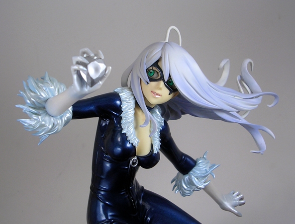 While this is certainly not an action pose, Koto managed to convey a wonderful amount of kineticism in the cape and hair. Sure, a lot of Bishoujo statues have windblown hair, but here the garment and hair work together to create a great level of energy in this piece. Also the way she’s holding her staff makes her look like she’s either about to receive an attack, or perhaps she’s just bested some thugs and is pausing to admire her handiwork. Either way, the pose here is just an amazing blend of posturing an action.