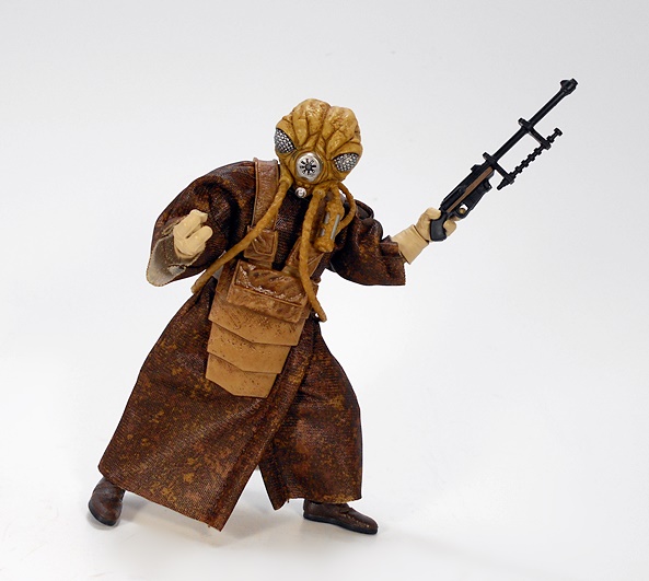 I’m not going to run down the articulation here, but it feels like the figure makes use of all the standard points. He is definitely a lot more agile than I need my Emperor figure to be. Seriously, in terms of posing him, he can do most anything, but all I need him to do is stand there looking haggard and menacing. Palpatine comes with his rustic black cane, which he can hold in his right hand, and his left hand is sculpted so as to be pointing. The cane feels a little short. I don’t remember The Emperor hunching over quite that much when walking. But I can live with it.