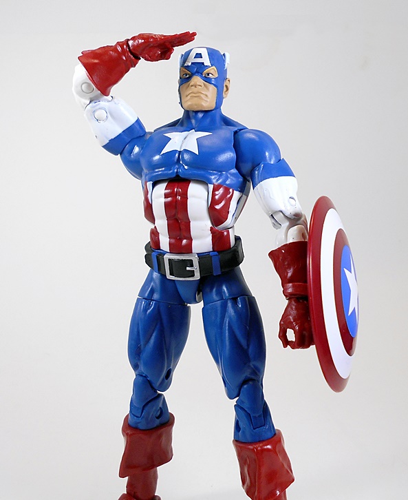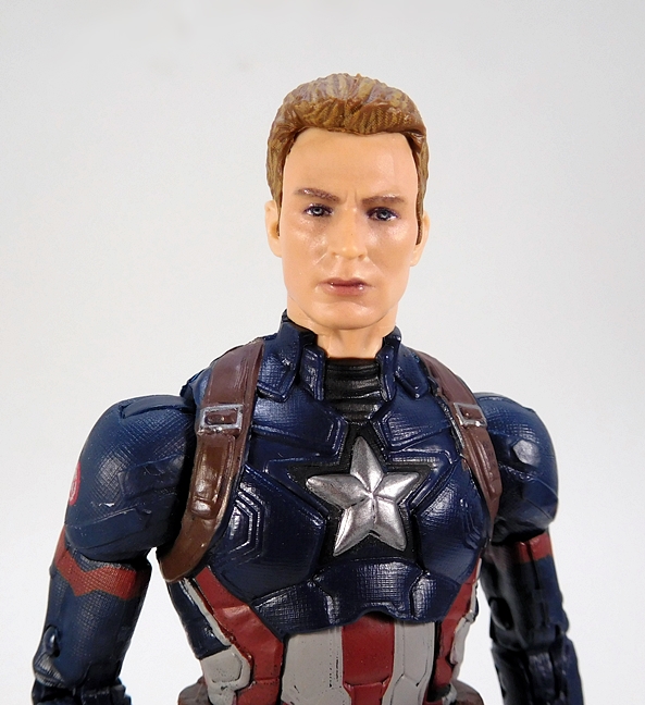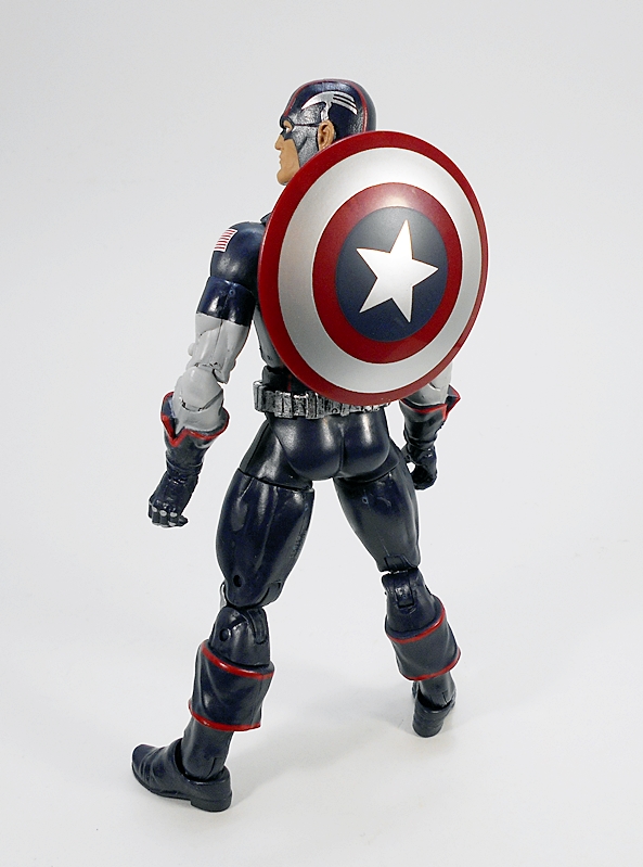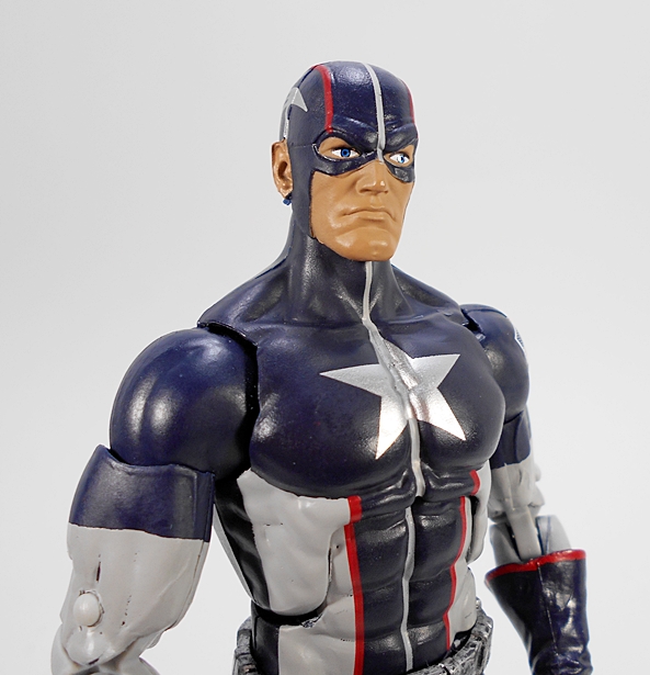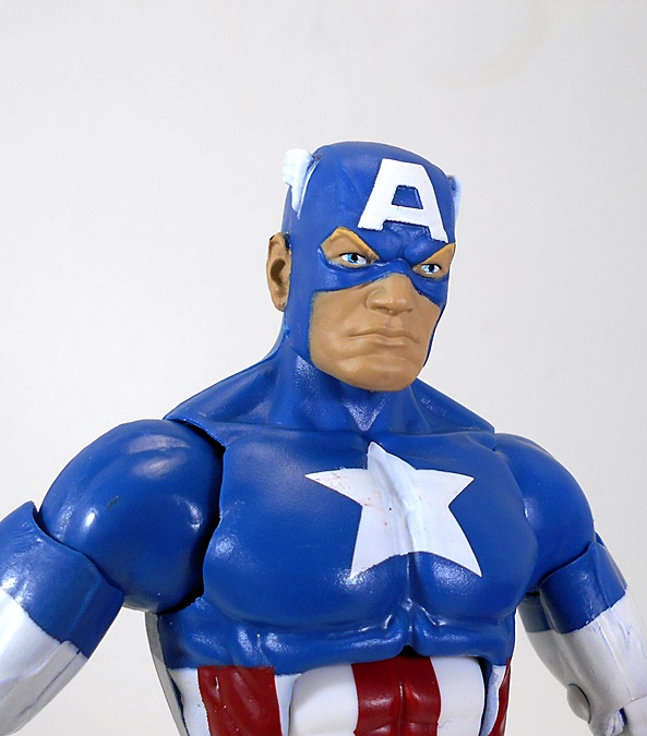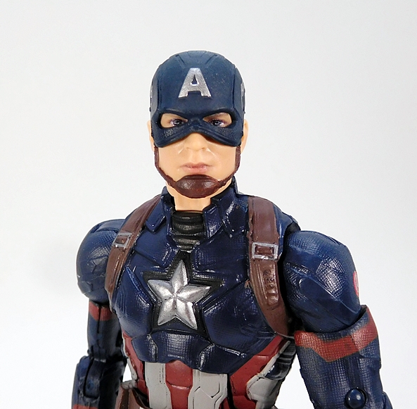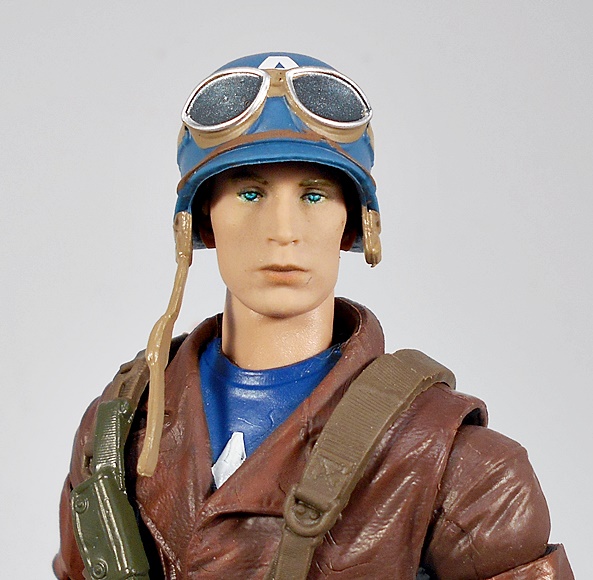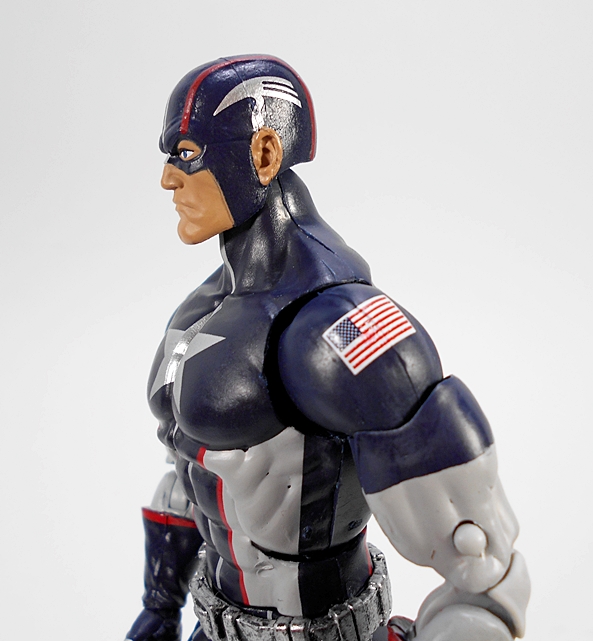 Cap comes with two heads, one masked and one not. The masked is likely the one I will display the figure with most of the time, and it is a beautiful piece of work. The helmet and mask are intricately detailed with some great texturing, sculpted stitch lines, and some immaculate silver paint for the “A” and the wings on the sides. There’s a very nice depth to the sculpt as well, making it look like the helmet and mask were actually sculpted on top of an unmasked head, even if that wasn’t the case. The neck piece is extremely long and sockets deep into the figure’s chest, and when combined with the high collar of the suit, leaves no neck seam at all.