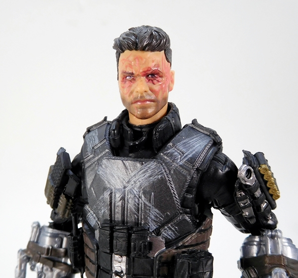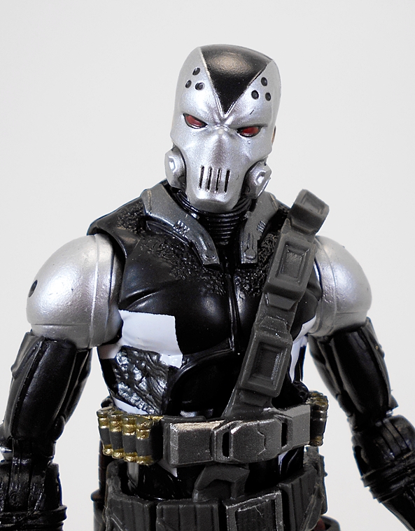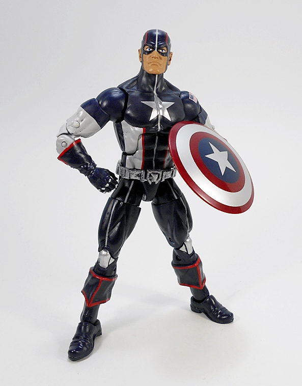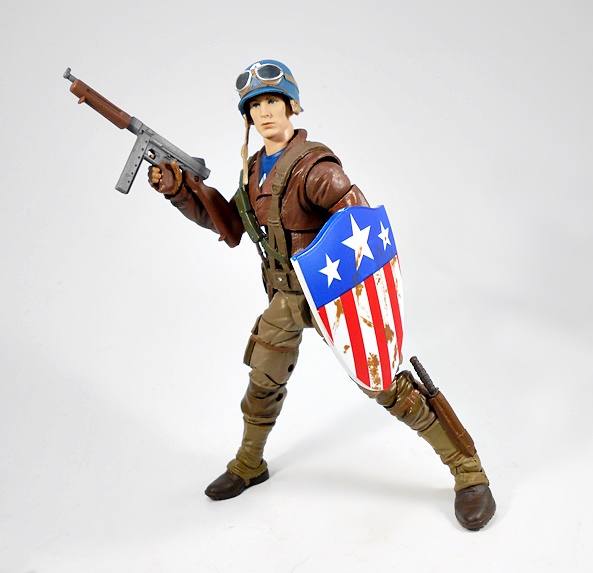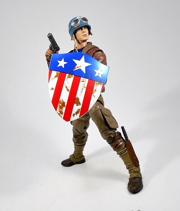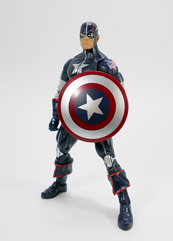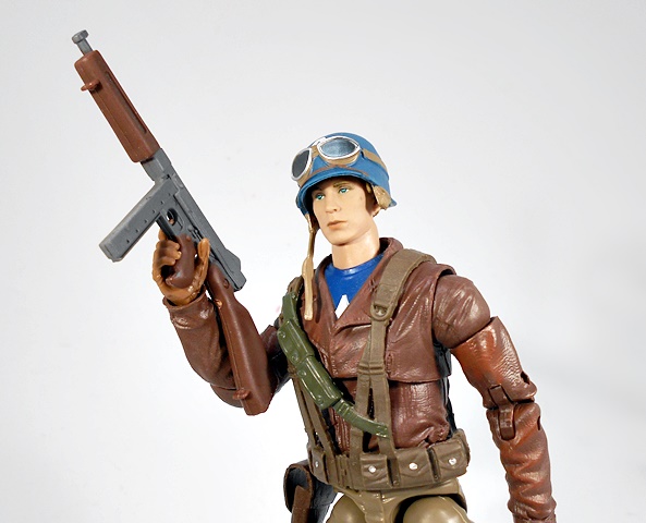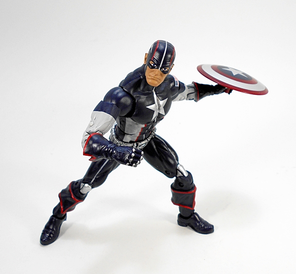 Cap comes with two heads, one masked and one not. The masked is likely the one I will display the figure with most of the time, and it is a beautiful piece of work. The helmet and mask are intricately detailed with some great texturing, sculpted stitch lines, and some immaculate silver paint for the “A” and the wings on the sides. There’s a very nice depth to the sculpt as well, making it look like the helmet and mask were actually sculpted on top of an unmasked head, even if that wasn’t the case. The neck piece is extremely long and sockets deep into the figure’s chest, and when combined with the high collar of the suit, leaves no neck seam at all.