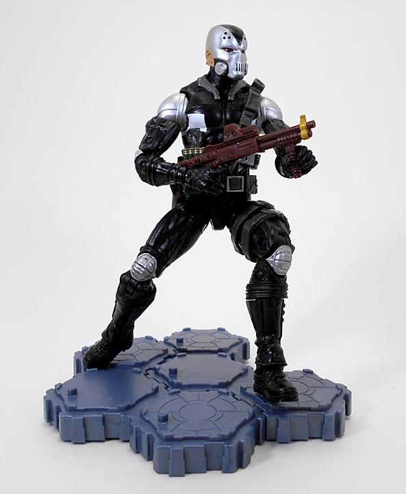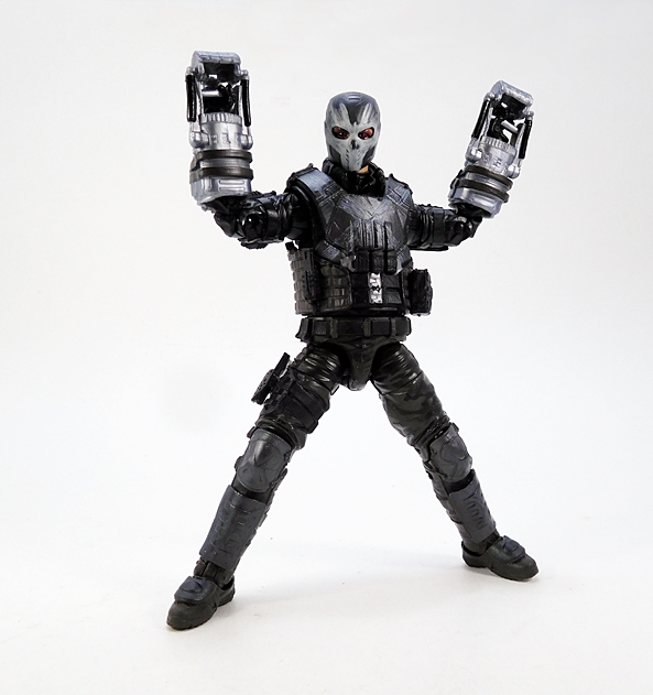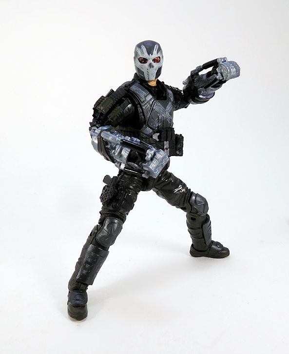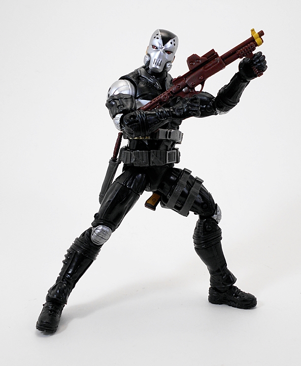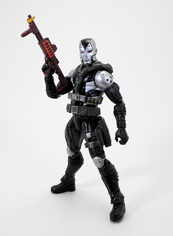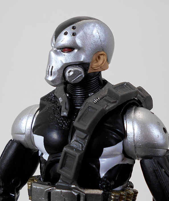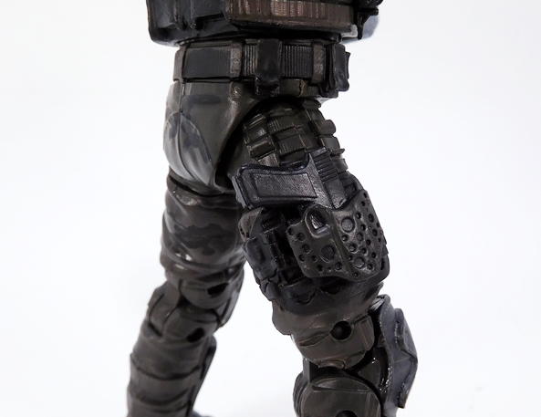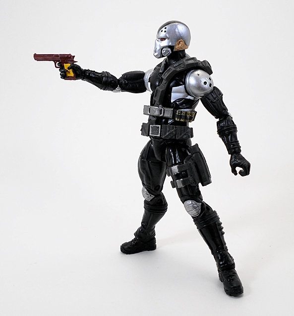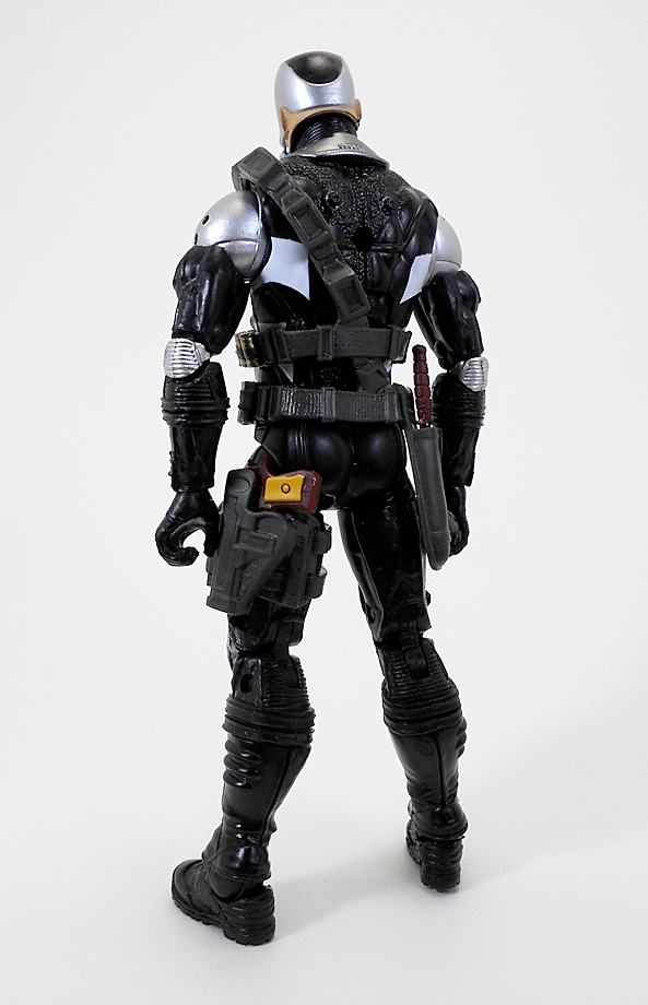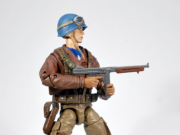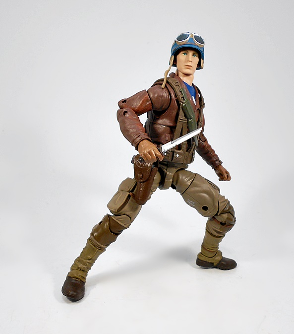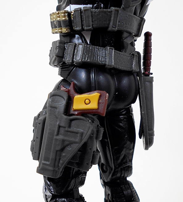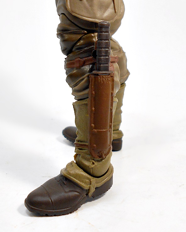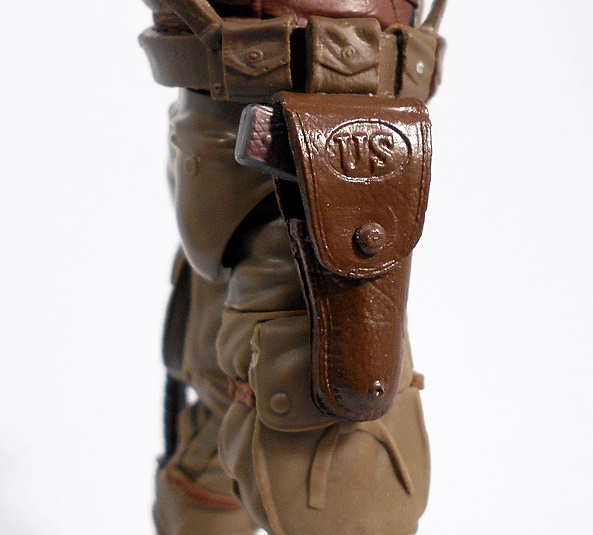 The boots consist of two pieces: A ball jointed foot, and a sleeve that makes up the rest. This allows for plenty of articulation in the ankles and a flat-footed stance. There’s still a seam where they meet, but it’s worked into the sculpt pretty well, so as not to be terribly obvious. It is, however, necessary to sometimes make sure the two pieces are lined up correctly. The chest star and epaulets are cast in plastic and attached to the cloth, making them stand out, quite literally. The belt features a brace of bulky pouches, and it rests fairly snug above his hips.