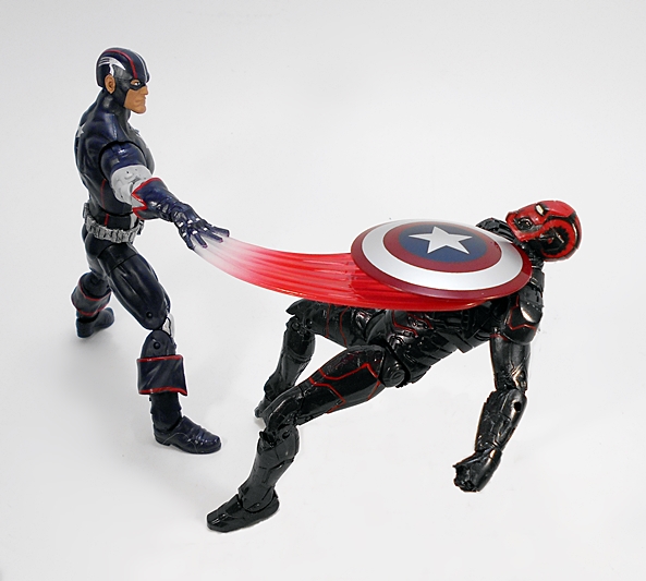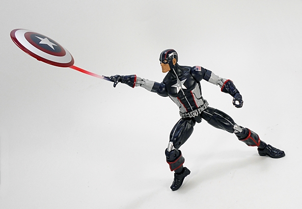 What is pretty damn cool is the big aluminum case to put it in! This spiffy piece of luggage has a foam interior with a cutout for the staff and handles on two sides. It’s an impressive accessory, and it kind of needs to be, considering that Cap doesn’t come with a whole lot of anything else. Still, the only other thing that I could have asked for would be a mask for him to hold when using the unmasked head. That would have been cool.