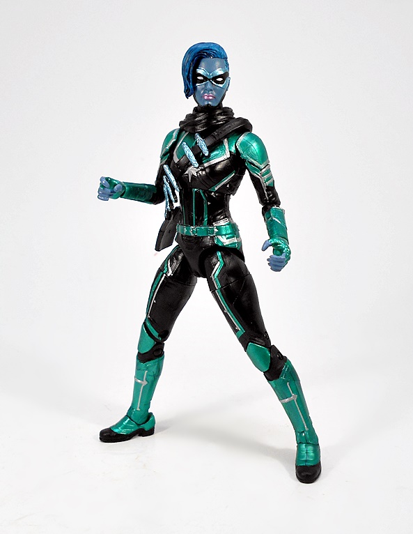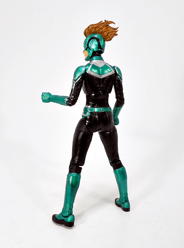 Carol comes out of the box with some plastic protectors her costume, but once that’s all removed she’s all ready to go! And damn, she does indeed look marvelous! The costume designers did such a beautiful job faithfully recreating her comic costume for the film, and likewise the wizards at Hot Toys did an equally impressive job creating it for this figure. The underlying suit is comprised of a super thin rubbery material, similar to what’s on my original Avengers Black Widow figure. But it’s also reinforced with plastic armor on the torso, shoulders, forearms, knees, and boots. What’s particularly impressive is how seamlessly they coexist, particularly the torso piece. It’s genuinely tough to tell where the armor ends and the flexible suit begins.