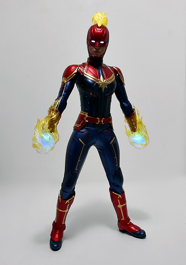While I’ve had some nitpicks along the way, I have to say I’m extremely pleased with how this figure turned out. And despite not being a huge fan of the movie, I’m still just as excited as ever to put Captain Marvel on my shelf. This is just one of those figures that pops out at me even among all the other colorful Marvel characters in my Hot Toys display. And at about $260, this figure feels like one of the better values I’ve had in a Hot Toys lately. Besides the amazing work they did on the costume, you get a second portrait, light up effects in the head and arms, four sets of effect parts, the bomber jacket, and a Flerken. And yeah, Goose didn’t turn out as well as I had hoped, but if I remember correctly, they the Jones figure that got bundled with Aliens Ripley didn’t turn out so hot either. Maybe Hot Toys just has problems with cats.