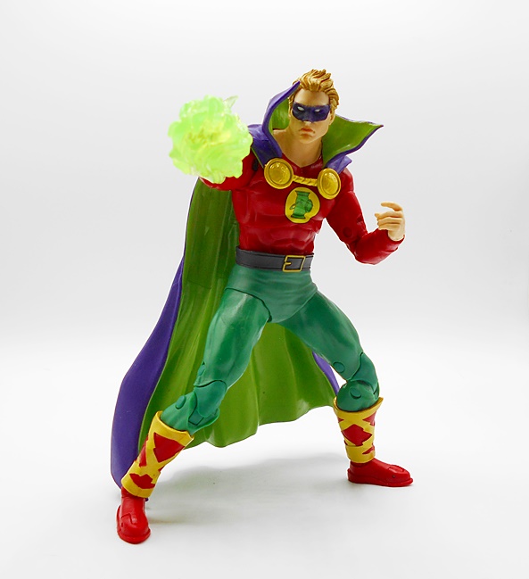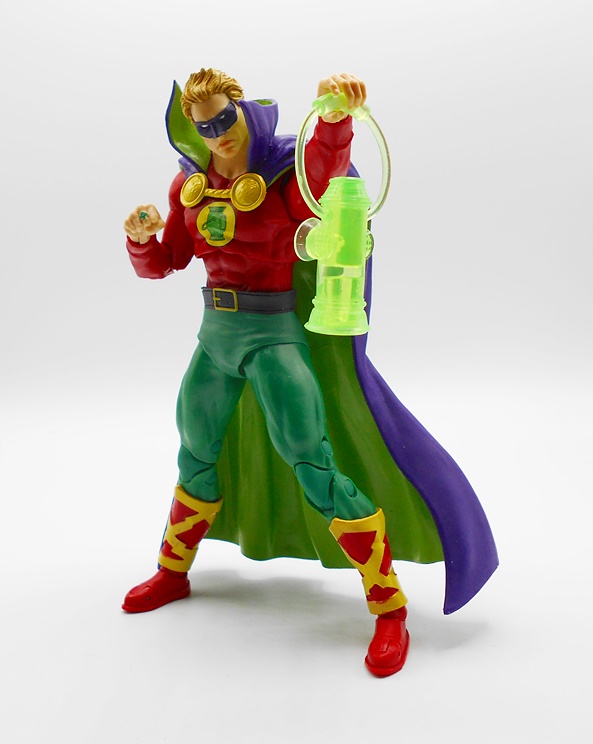 If you’ve been kicking around Todd’s DC Multiverse, you know what to expect from the articulation and yes, it’s really quite good. Huntress faces some balance problems because her feet are rather small and in high heels. Combine that with the cape and she’s probably a figure that you’ll want to use the included stand with. Still, I was able to get her to stay upright most of the time. The three pairs of swappable hands include fists, gesturing hands, and gun-holding hands.