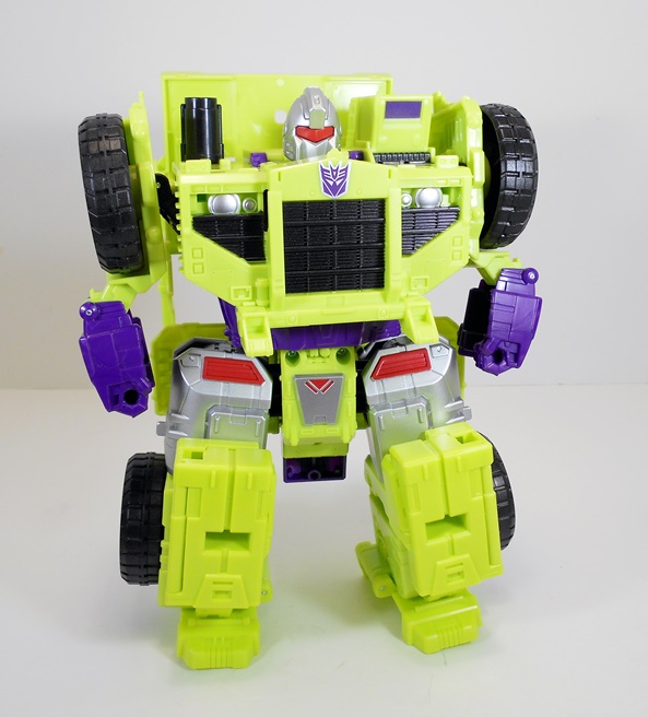 Of course, there’s been a lot of hate thrown Long Haul’s way because in robot mode, he’s a bit husky. So what? It’s been 30-years since we’ve seen this guy and he’s let himself go a little. I’m a somewhat portly middle-aged fellow, so I can relate, Long Haul. You won’t get any fat-shaming from me. All kidding aside, the thing I loved the most about G1 Long Haul was the way he wore the front of his vehicle mode as his chest, similar to some of the Autobots, and this design keeps it real. Sure, he’s got little stubby arms, but so did the original toy. The bottom line is that Hasbro had to make this guy a powerhouse in order to take on the center of Devastator and I’m fine with that.