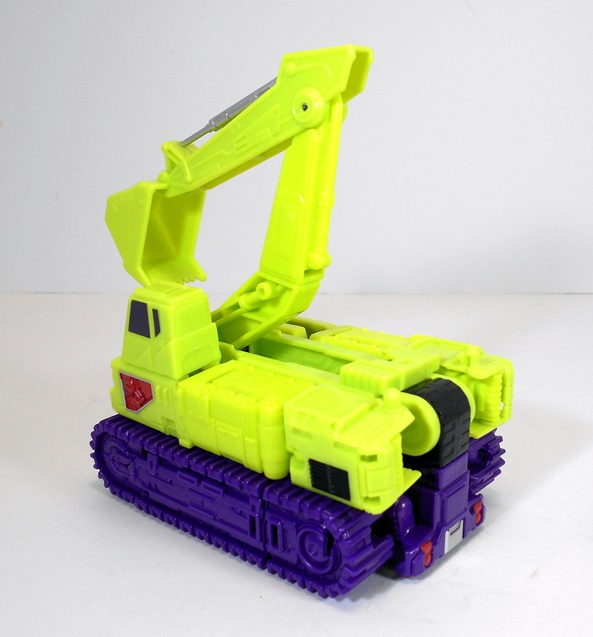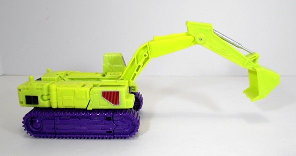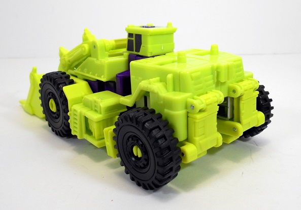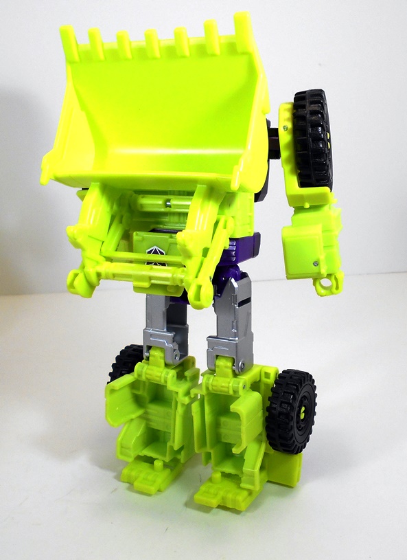 Scrapper is probably my favorite of the entire lot because he looks like a properly updated version of the original toy. His vehicle mode is what I like to call a scoop-dozer, because I have absolutely no idea what you really call these things. It’s a pretty good rendition of the original vehicle mode with a fair amount of panel lines, sculpted bolts, ladders, vents and all the other bits and bobs. He rolls along on four chunky wheels and you get some nice articulation in the scoop.