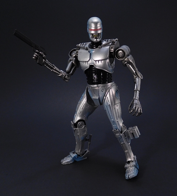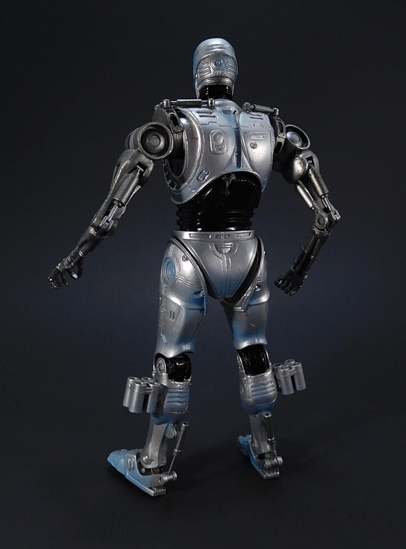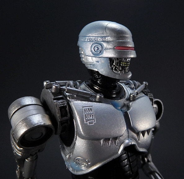 The exploits of Ahab’s hunts are written all over his face. His right eye is missing and flesh has grown over the socket. He’s also missing his right upper mandible, and there are some scars interrupting the spotting on the top of his head. But he’s still a handsome devil and I will never stop being impressed by the work NECA puts into the Predator dreadlocks, with each one separately sculpted. And while it’s not actually part of his head, now seems as good a time as any to talk about the hose that connects the shoulder armor to the piece of chest armor. With my past Preds, articulating the arm would cause this to pop out of the hole on the chest armor. That’s fine, because otherwise it would severely limit that limb’s articulation. Unfortunately, this one appears to be glued in, because instead of simply popping out, the tab broke off in the hole. I may glue it, I may leave it out, or I may just snip it off entirely.