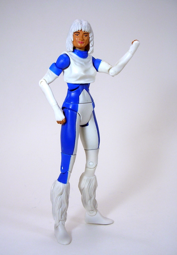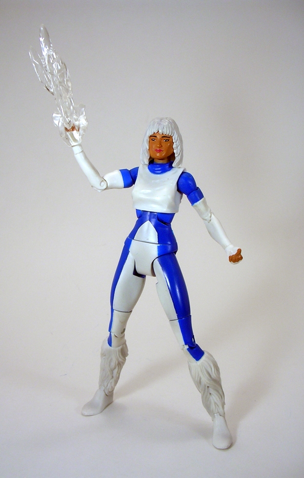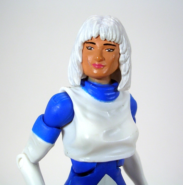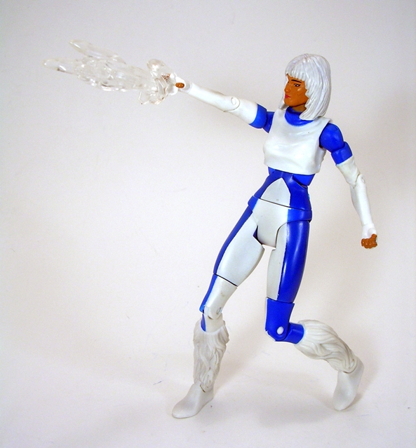 Yeah, I don’t know what happened here. The head sculpts for this line were almost always good, but poor Ice got screwed. She’s got a broad and rather manly face looks more like a dude than the attractive Ice from the comic panels that I know and love. Just compare the figure to the box art and you can see an insurmountable artistic chasm between the two. But if the poor sculpt wasn’t bad enough, there are also some creases from the casting process on her face, which make it look like she’s been scarred up in a bad car accident. How unfortunate. The hair sculpt is a bit chunky, but overall not bad.