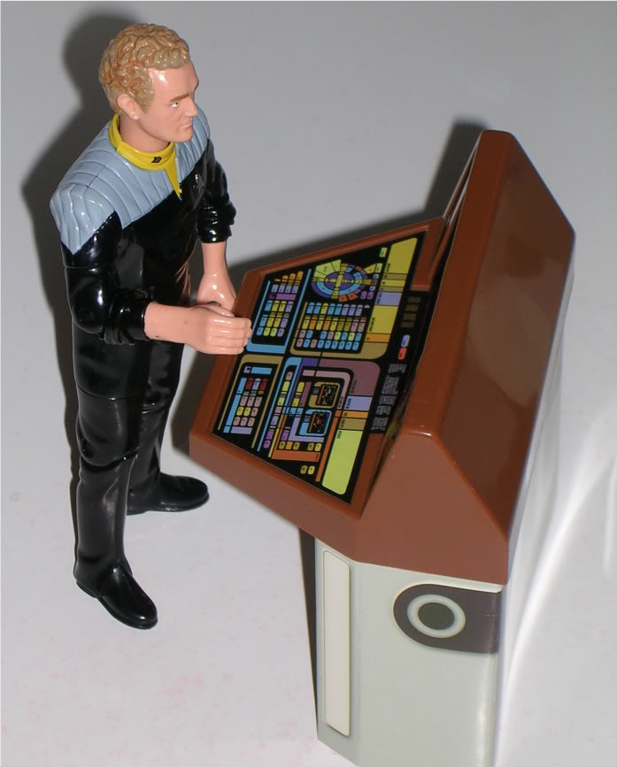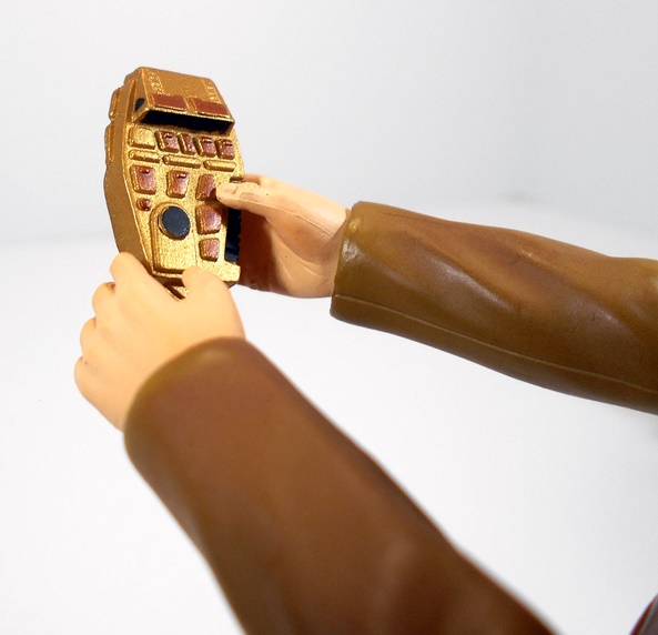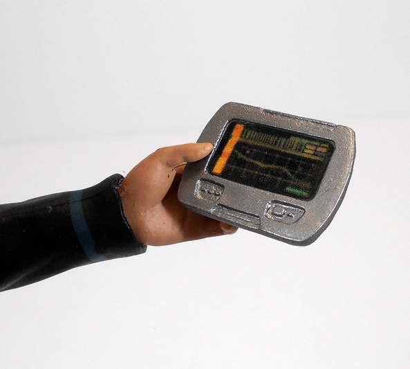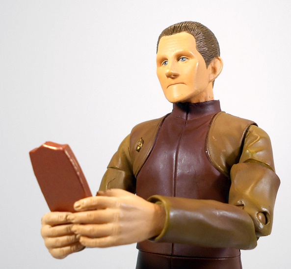 I’m pretty sure I mentioned last time that Exo-6 likes to get a lot of money out of their accessories and once again we have the repacked Tricorder and PADD. Just like last time, the Tricorder uses a magnet to secure the bottom opening panel. This allows it to be displayed open or closed without the need for a fragile hinge. Everything here is identical to the Tricorder we saw with both Sisko and Kira right down to the stickers. You get a magnetized holster for the Tricorder, but as far as I can tell there’s no magnet on the figure to secure it. The PADD is the same sculpt as Sisko’s and Kira’s, but at least we got a new sticker for the screen. The PADD is a decent accessory for Odo, even if I would have much rather we got one displaying his crime reports. The Tricorder, on the other hand, is a bit of a reach. No doubt he used a Tricorder in some episodes, but it wasn’t something he used often.