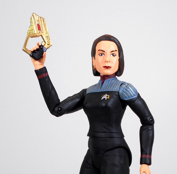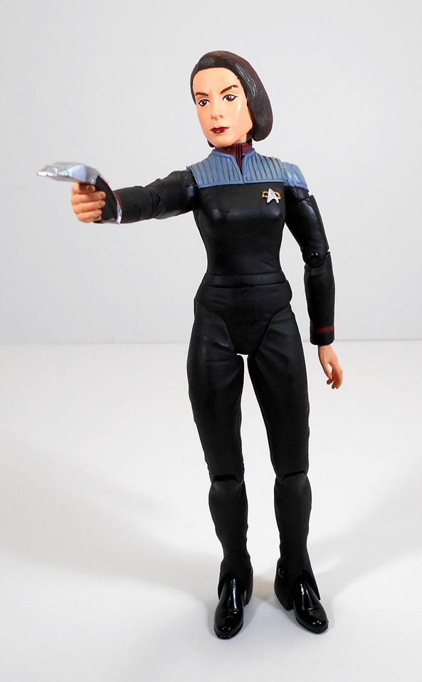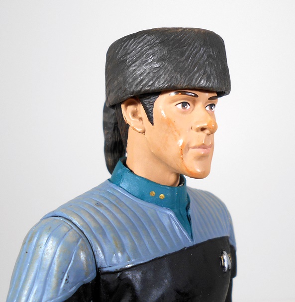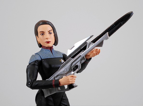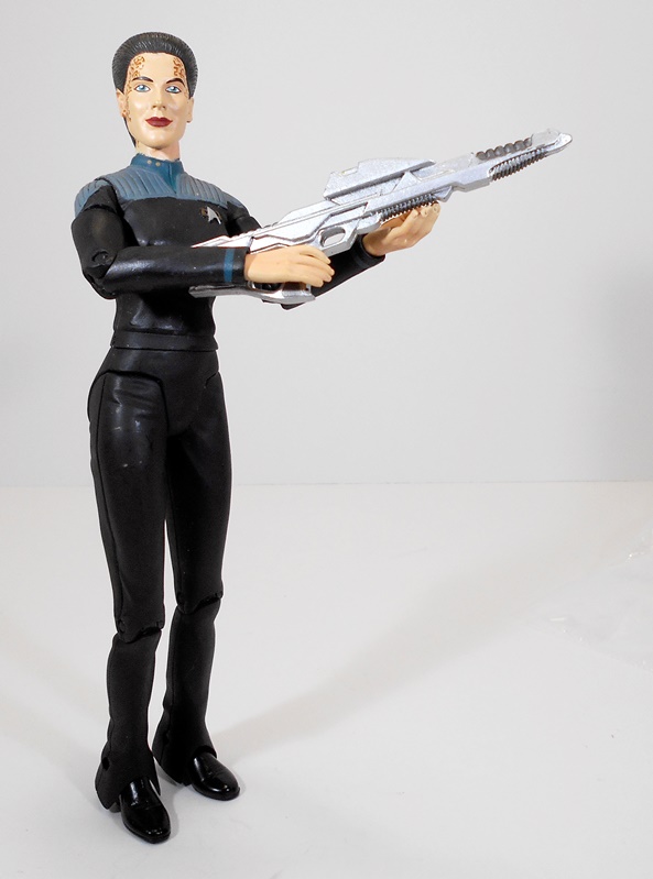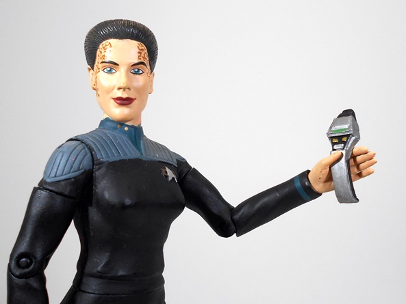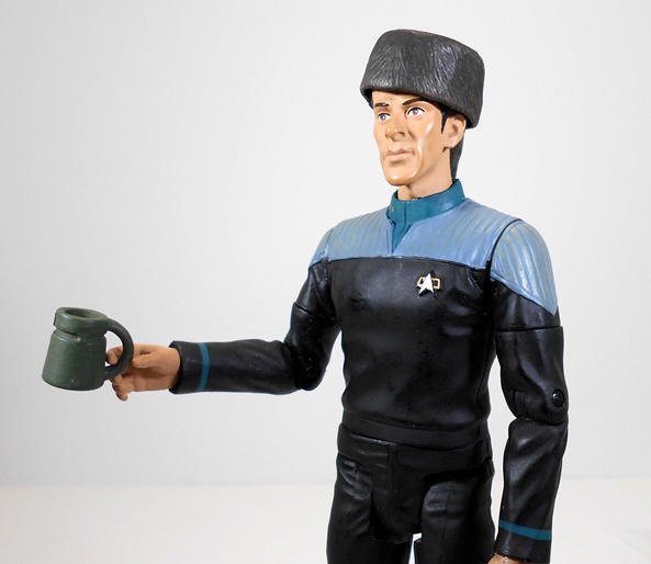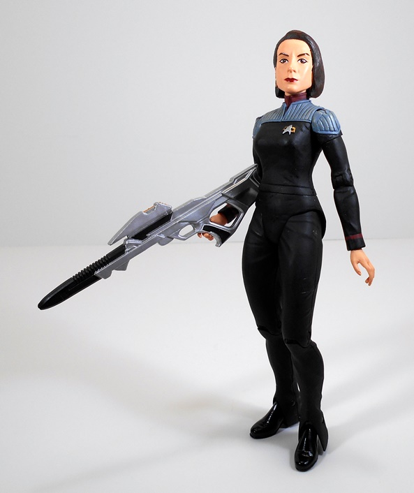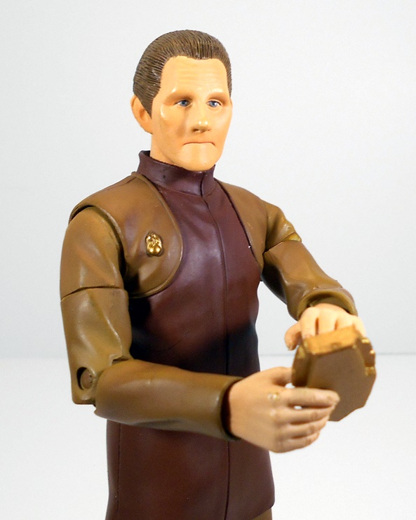 As for articulation, it’s impossible for me to say exactly what’s going on under that uniform, but the body feels as highly posable as the rest of the line. The uniform does offer some restrictions, especially in the hips where you want to be careful not to pop those stitches with extra wide stances. I already mentioned the boots inhibiting the ankles, and the padding in the upper body can hinder some range in the shoulders. Still, I’m happy with what we got here and Odo can do most anything I would want him to. You get three pairs of hands: Fists, relaxed hands, an accessory holding left hand and a flat right hand. I would have much rather had a pointing finger hand than that last one I mentioned.