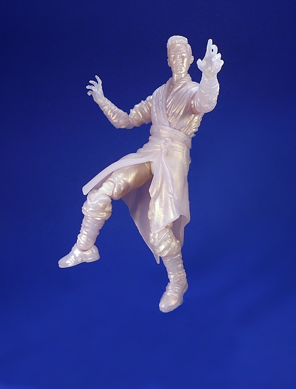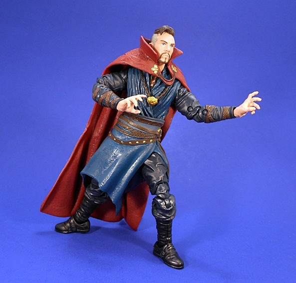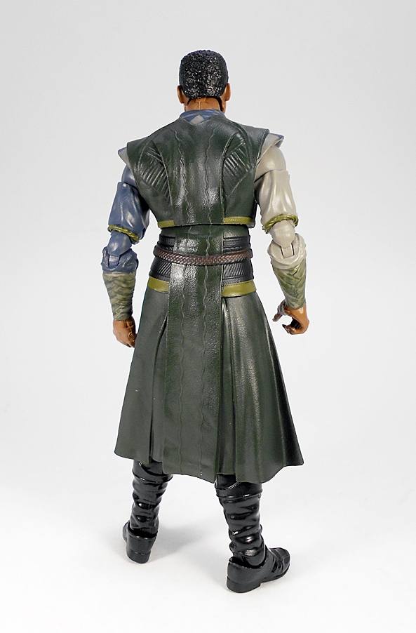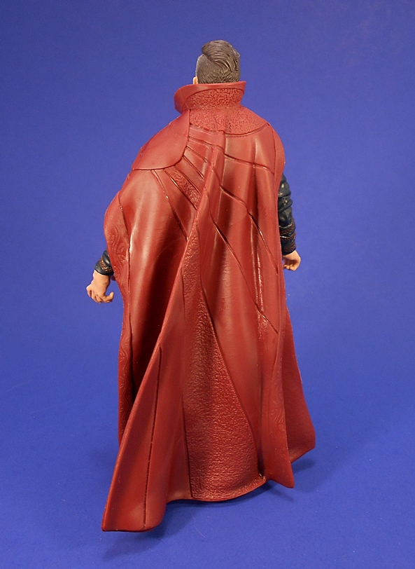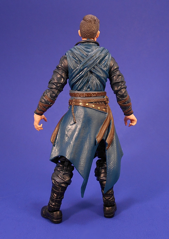 The elaborate belt is a real showpiece on this figure and as much a part of the costume’s magnificence than anything else. It’s actually a network of belts! First, you get the wide belt, dare I call it a “Cumberbund?” This piece is made of a leather-like material with some excellent stitching and texture. On top of that you get two woven belts with sculpted plastic loops. There are two larger circular fixtures, one on the front, positioned near his left hip, and one on the back, and on the back, the belts terminate into a glorious fringe. Below all that are two narrower leather-like belts. I never thought I could get all worked up over belt designs, but these are just amazing and they all conspire to give Strange a smart and trim look.