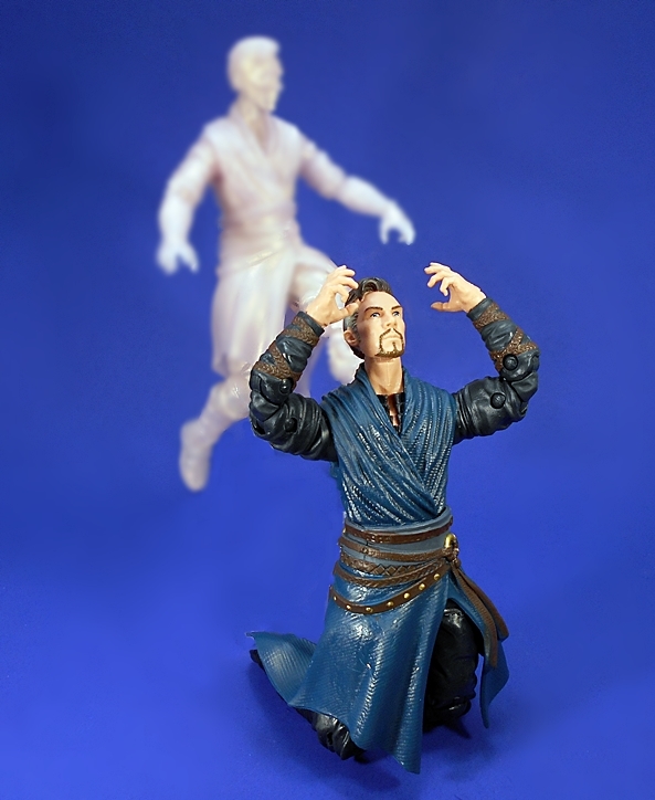 Also in the box is the same style of large stand that I last saw way back with Falcon from Winter Soldier. In fact, it’s the same stand with just a different graphic on the face and a different name plate on the front. Just like Falcon’s stand, it features a spring-loaded claw to grasp the figure around the waist, but instead of the flexible post, it comes with an acrylic one to simulate Strange levitating. This is a ton of fun to mess around with, and I appreciate the added value and gravitas that this stand brings to the table, but just like the Falcon stand, it’s too big for my display shelf, so Stephen will have to go on a generic stand for now.
