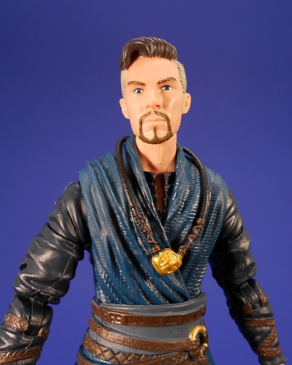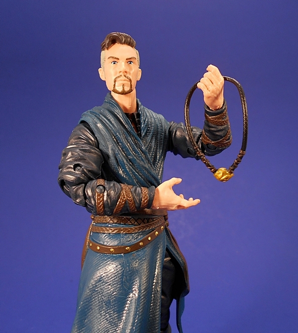 In addition to the Sling Rings, the Eye of Agamotto is also included to accessorize Strange’s wardrobe. You get two of these powerful amulets, one with the Eye open and one with it closed. Contrary to what was seen in the film, I’m opting to display him with the open Eye. Both pieces hang on red and black string and they each feature some beautiful sculpting as well as a nice mix of gold and copper paint. The opened Eye is painted with a vibrant metallic green to give it an almost ethereal glow.