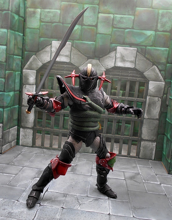 Oh wow, I really dig this packaging! The box is an homage to the entrance to the Dungeons & Dragons ride. There’s no slip cover, which I kind of figured since they’ve been deleting them from their longer running lines. The window shows off the goods nicely, which is impressive because she’s supposed to be invisible. The back of the packages have an actual character sheet for each character, and as an avid D&D player back in High School, I got a real kick out of this. Seriously, I had a big stupid grin on my face as I perused Sheila’s stats. Of course, this figure variant is based on Sheila’s special ability, using her magic cloak to render her invisible. A pretty useful skill for a thief, even if she didn’t do much thieving in the cartoon. I’m not gonna lie, this was a tough figure to photograph, so I’m not going to go too long today.