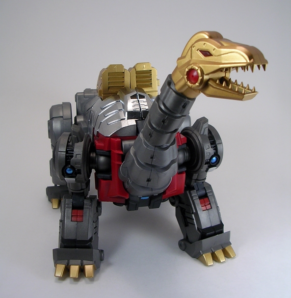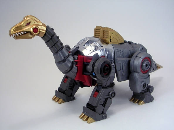 Now, I’m not going to get into the ethics of one sentient robot using other sentient robot beings as a bludgeoning implement, but if you don’t think too hard about it, it’s pretty bad ass. It’s not the prettiest weapon in the world, it’s just a big block of destruction with spikes sticking out of it, but it’s ridiculously heavy looking and Severo looks great wielding it. I would imagine it could make quick work of a Decepticon head. It’s really the perfect weapon for a prehistoric robot warrior. But Severo is not just any robot warrior, he’s king. And every king needs a throne…