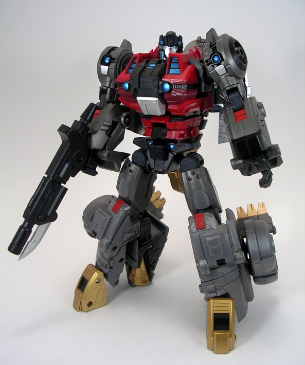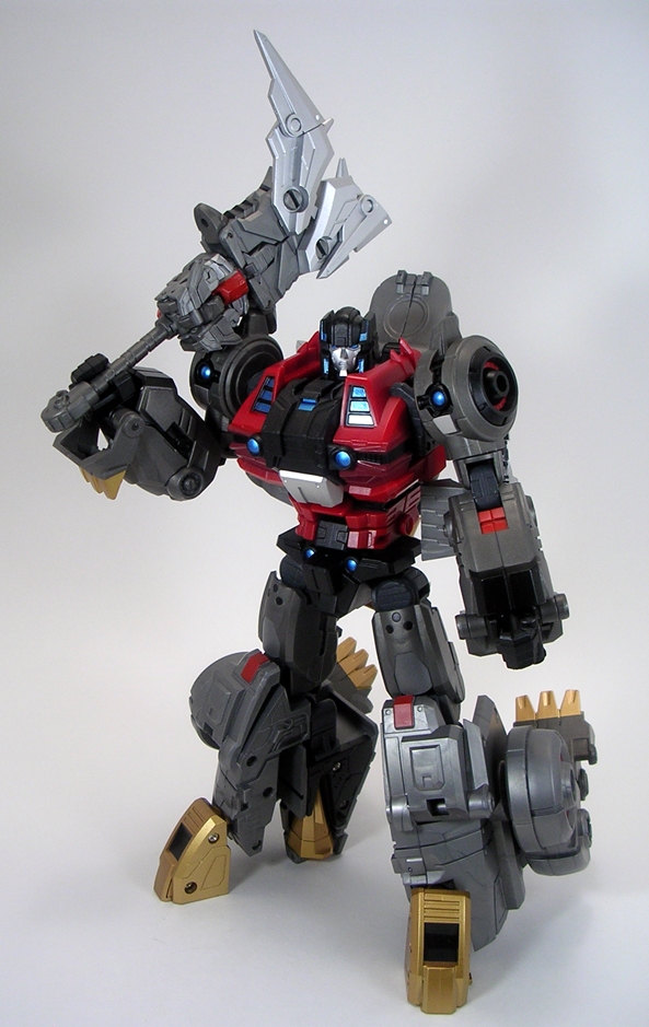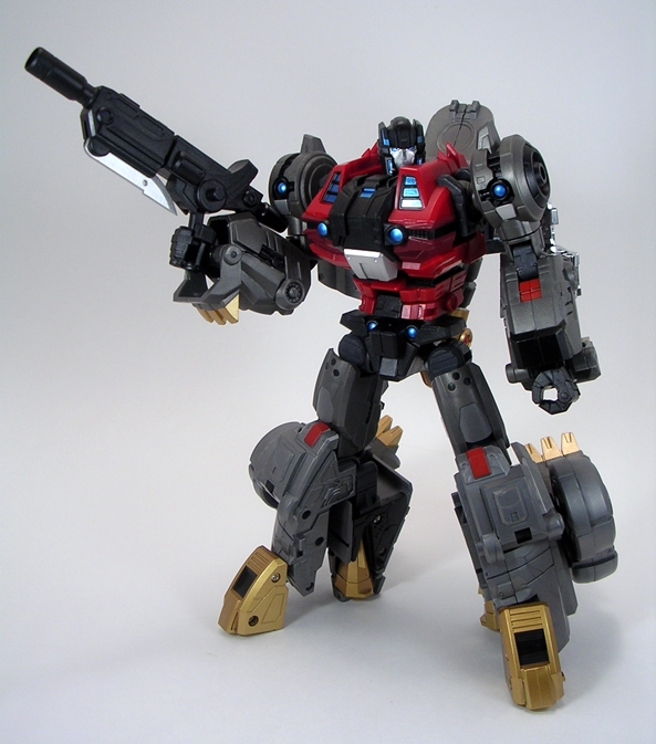 If the mini-guns are a little too overstated for you, Severo comes with a double-barrel rifle that’s very reminiscent of Grimlock’s trademark weapon. It’s a single molded piece of black plastic with two translucent red pieces that plug into the ends of the barrels. This thing looks OK, but I feel like maybe it’s a little too big and the red tips on the barrels look a little obnoxious to me. It’s nice to have it, but I doubt I’ll be displaying him with it a lot.