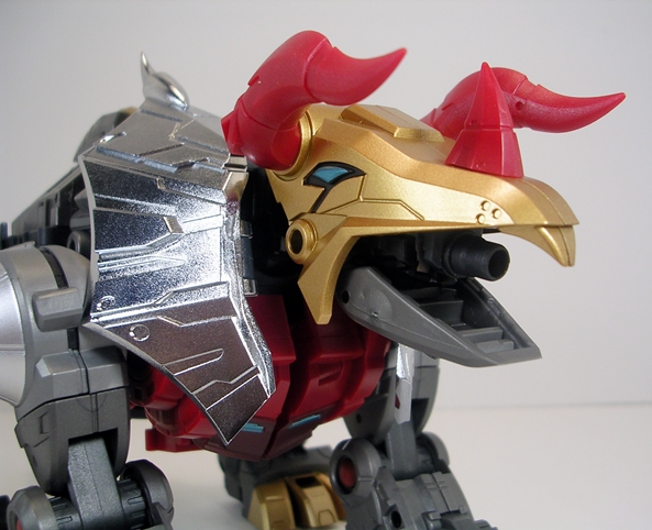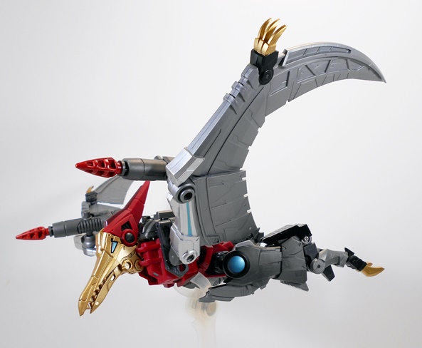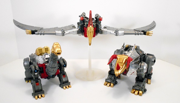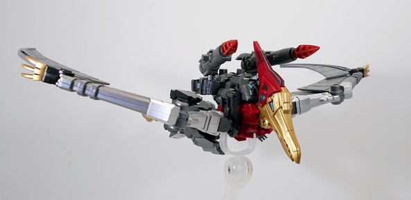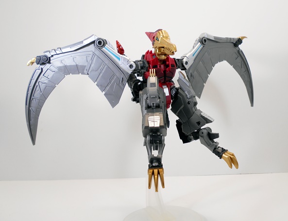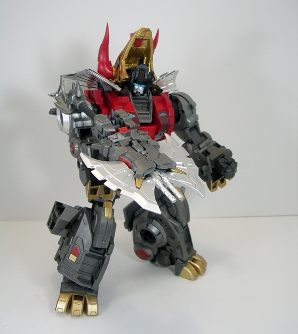 Phew… even for a two-parter, this was a lot to talk about, and my thanks to those of you who are still with me! The Deluxe version of Severo retailed at most sellers for around $139.99, which was only about $20 more than the regular version. Of all the LER Dinobots, he’s the only one that seems to have sold out at the regular places I visit, at least the last time I checked. I’ve enjoyed each and every one of the releases in this series quite a bit and now that I have the LER versions of the original three Dinobots, as well as Swoop, I’m all the more pleased. These make for a damned impressive display, which only begs the question… where’s the LER version of Snarl? Well, Fansproject actually showed off a painted prototype of Snarl, designated LER-06 and named Pinchar, sometime last year. Although since then the LER-05 and LER-06 slots have been taken up by a couple of Femme-Dinobots that transform into raptors. These are slated to be released any time now, and I like the idea that they’re thinking outside the box. Again, my favorite thing about these dinos is that they’re original interpretations and not just straight copies. But it’s undeniably frustrating to be getting those before Snarl. And there’s still some question over whether or not Pinchar is going to release at all. Fansproject is claiming it will happen, but the longer the delays get, the less likely it seems.