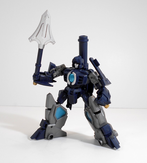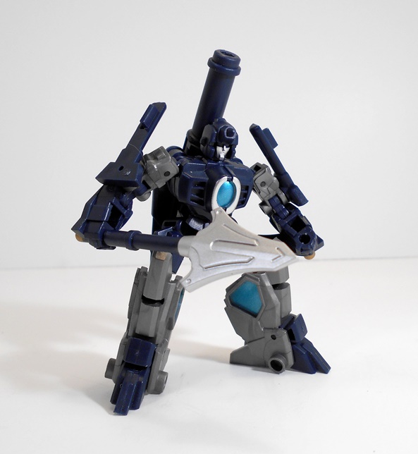 Did I mention Severo can store most of his weapons on his person when he’s not using them? The mini-guns tab securely into slots on his “wings” which makes them angle up over his shoulders and gives him a cool and very distinctive silhouette. They also help fill up that hollow look behind the wings that I mentioned earlier.