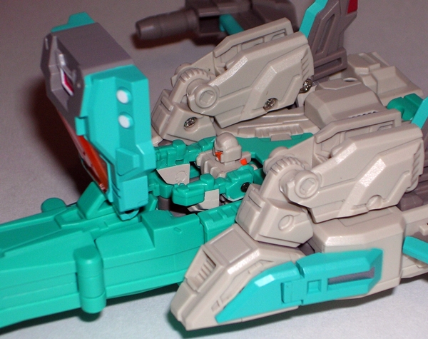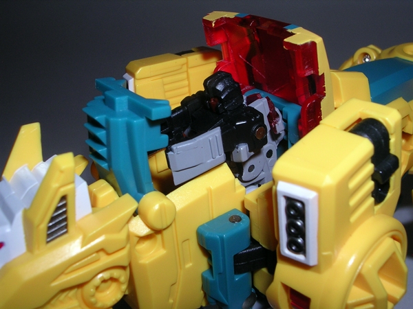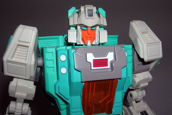 Will ya just look at that head sculpt. It’s so damn gorgeous! I want to take that head sculpt out for a lobster dinner, bring it home and make sweet passionate love to it all night long. The detail in the face makes it quite possibly some of FP’s best work and yeah that’s saying a lot. It’s not a big noggin and yet they managed to pack plenty into it. The crown-like aspect of the helmet is pure love, the paint is crisp, and I’ll be damned if Sigma-L’s clear visor doesn’t raise and lower to give you the look you want. I am not being impulsive when I say this is undoubtedly among my Top Ten Transformer heads since I can remember. It really is that damn good! The fact that it also happens to be a Headmaster, which transforms into a tiny little robot makes this pudding all the more sweeter.