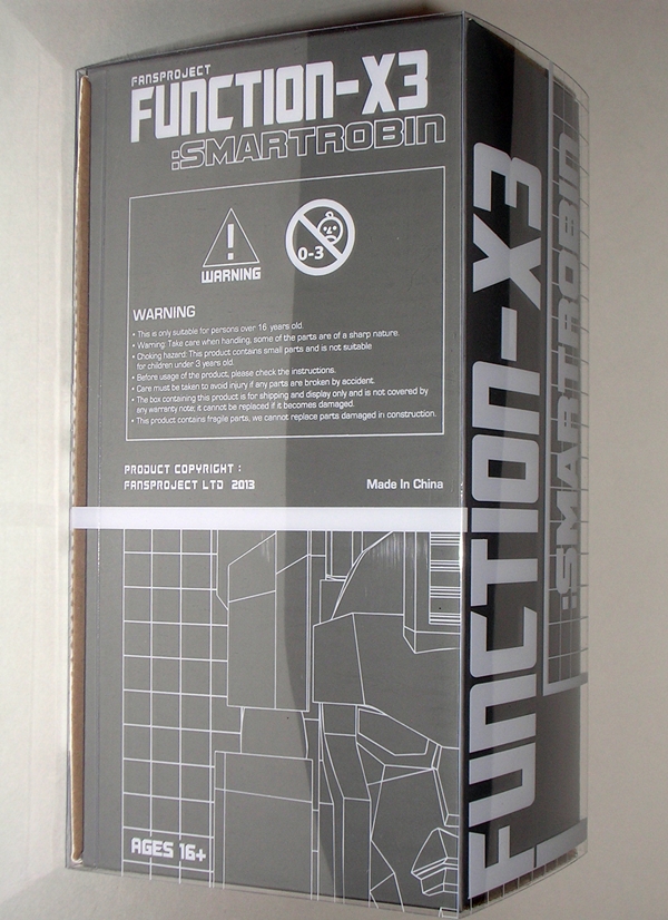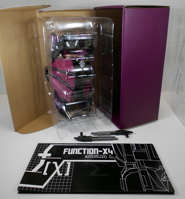 Mindwipe Sigma-L comes in a package that eschews the normal window boxes meant to approximate something you’d see on the toy shelves, Fansproject has been using this rather unique presentation for their Function Series since X-01 Code was first rolled out. It’s a colored, and otherwise blank, shoebox affair with an illustrated clear plastic sleeve around it. I wouldn’t like to see this package design used for everything but I rather like it in the limited confines of this series. It feels rather classy and special. My only complaint here is that the clear sleeve on mine got scuffed up in transit, but that’s not such a big deal to me.
