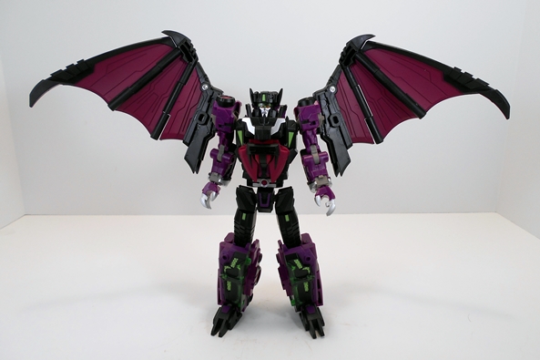 Holy hell, this is one hot and sexy looking robot! Yeah, I said it and I’m not ashamed. There’s something about the aesthetics of Fansproject’s Function line that really just gets it. The figures manage to look modern and interesting and yet somehow still capture a bit of the boxy G1 designs. In this case, Sigma-L looks like he belongs to the whole Post-1986 movie aesthetic where the robots were getting a little more contoured and organic in their style. What I’m saying is that Sigma-L hits the sweet spot between those two style books that totally scratches my itch. This figure is also oozing personality from his sharp silver claws to his bat wings, which are fully accessible in robot mode, but can also be folded in for a more streamlined look. I honestly can’t decide which I prefer more, so I’d just like to think he deploys them when he’s ready to attack.