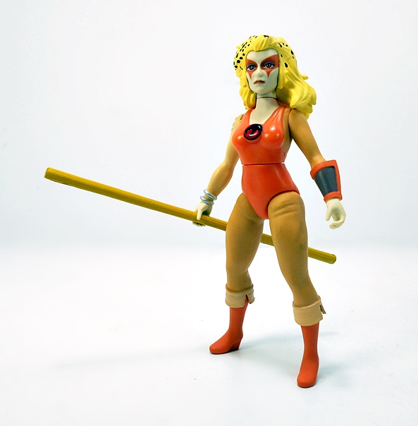 The articulation here is identical to Tygra’s although Cheetara’s hair renders the neck swivel almost useless. She comes with one accessory and that’s her staff, which has a woodgrain finish to it and is painted over in yellow. She can grip it just fine, but her hands are sculpted with a bit of a turn, which is not ideal for posing with it.
