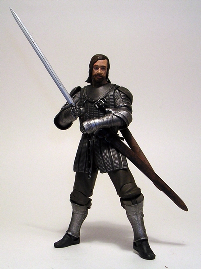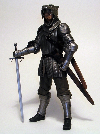 Overall, this is a pretty soft sculpt without an over abundance of detail or paint. In fact, from the neck down there is some silver paint on the belt fixtures and nowhere else. I suppose the Black Watch garb is convenient as Funko didn’t have to invest in many paint operations. The head sculpt is better than the ReAction stuff, and honestly not terrible for a figure in this scale, but it isn’t great either. One of the straps for the cape seems like it was supposed to be attached, but it looks damaged and just hangs loose. All these figures have the same articulation. You get the standard vintage style in the shoulders and hips, with additional hinges in the elbows and knees. The heads are ball jointed. In the case of Jon Snow, the cape renders the shoulder articulation useless, but you can take the cape off by popping the head. It doesn’t help much in my case since my figure is now missing his right arm. Snow comes with one accessory, his sword, which is fairly decent for the scale. I just hope he’s left handed. Moving on to his buddy…