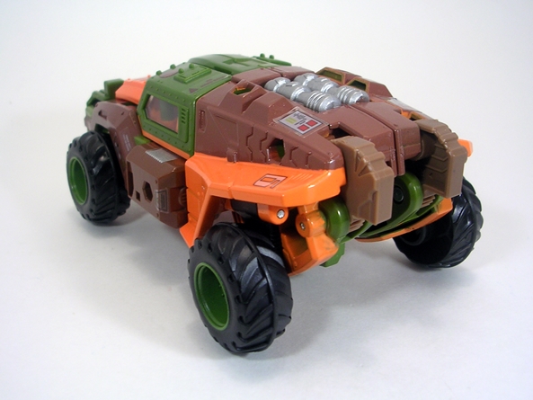 Well, I do like the art design! Or perhaps it would be more accurate to say, I like it better than what we’ve been getting. The character art has been phenomenal, but some derivation of the boring black package with generic font Transformers running up the side has been with us for a while. This is colorful and trippy and while the Legacy logo doesn’t really scream Transformers brand to me, I can get behind this. Unfortunately, like the packaging we saw in my Buzzworthy Bumblebee review, Hasbro has stopped using plastic windows to save the planet and now leaves the toy exposed to the elements, as well as the sticky fingers of children. I would much rather they just use a completely enclosed box, but whatever. Let’s start with Skids alt mode.