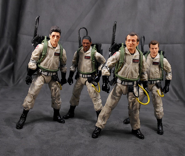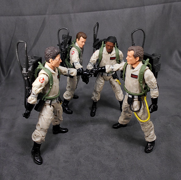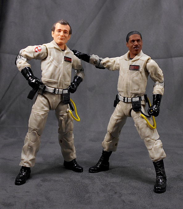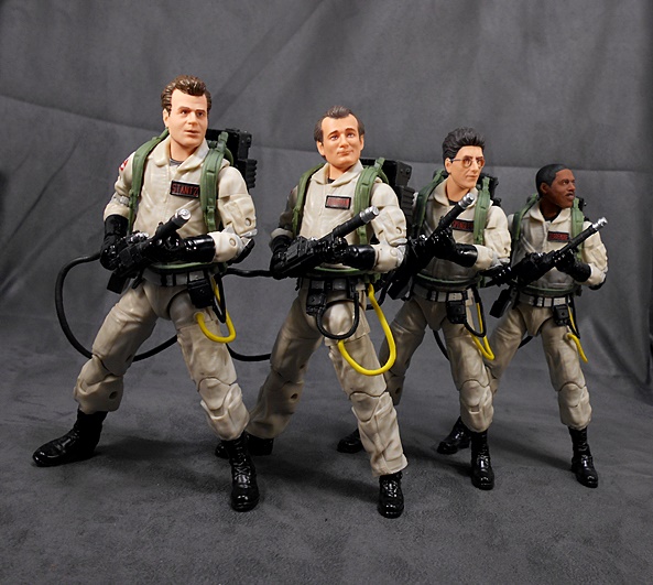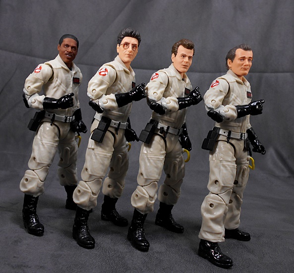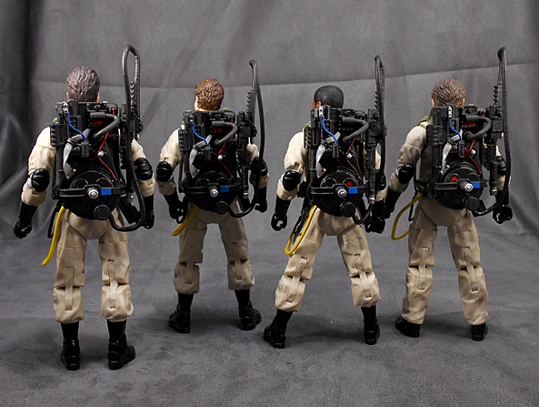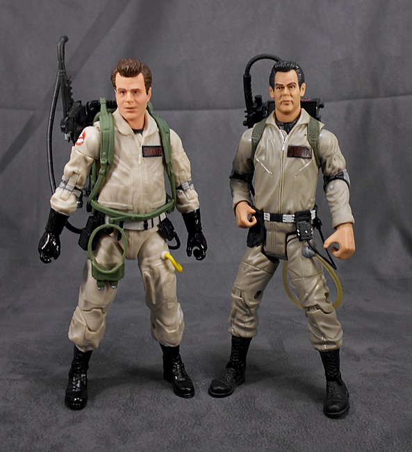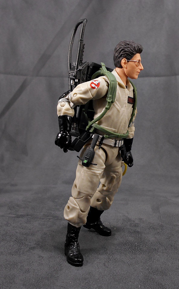 And boy don’t these just ooze charm like slime off of a free-floating, full-torso, vaporous apparition! I love the way these were individually stylized with completely different bodies. From Egon’s long and lanky form to Ray’s stocky frame, each character is so distinctive from each other. Nowadays, they would just stamp them out on the same body. And of course, the jumpsuits were individually colored to distinguish them from each other even more. Nice details include the cinched elastic on their wrist and ankle cuffs, the elbow pads, and the Ghostbusters logos stamped on their right shoulders. Likewise, the head sculpts are pretty good likenesses for their cartoon counterparts. Each of these figures have the standard five-points of articulation, and I absolutely love them!