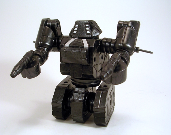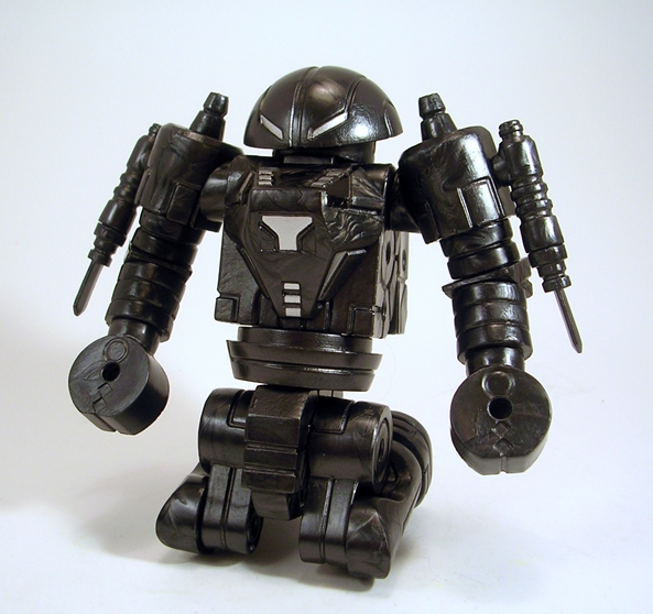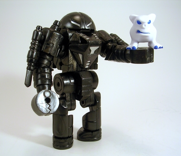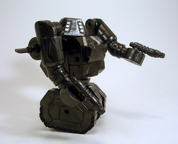 Baron is loaded with articulation and because he’s built on the Glyos system, you can easily take the figure apart at any one of the joints. The bulk of the jointing consists of rotating hinges, which are found in the shoulders, elbows, hips, knees, and ankles. The wrists have swivels and he can swivel at the waist in two different places. Lastly, the head is ball jointed. Picking this guy up is a dangerous affair, because once I start playing with him, he’s damn hard to put down.