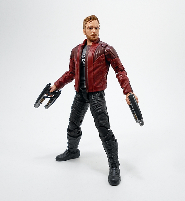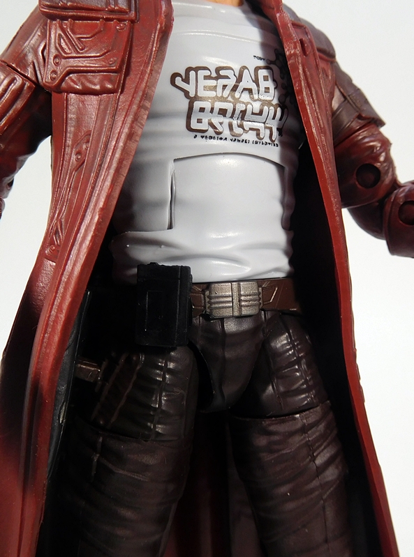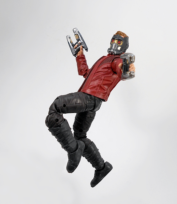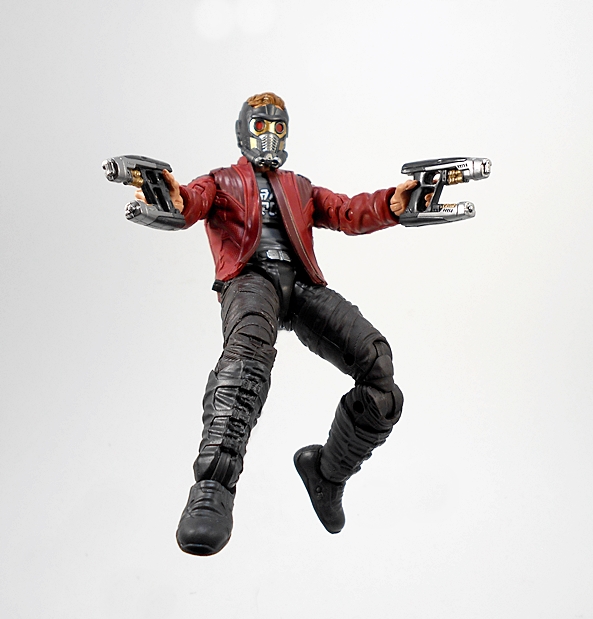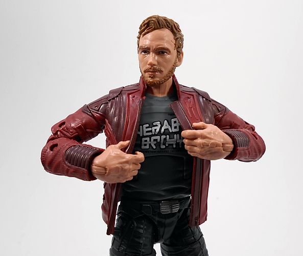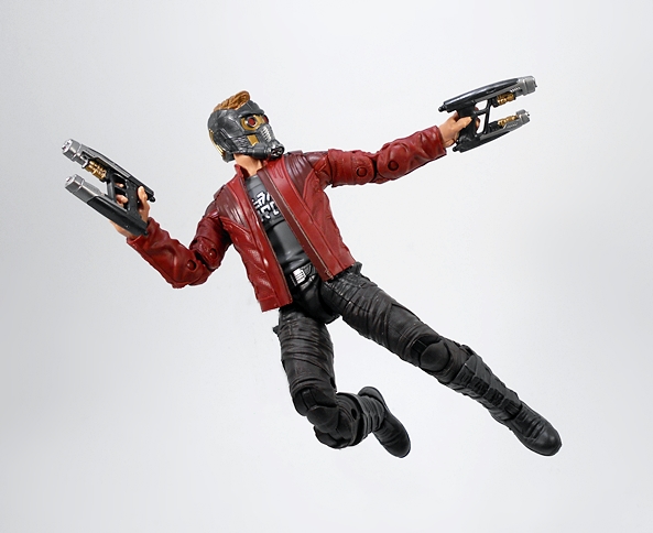 The Aero Rig! This chest harness is made up of front and back pieces, which attach around the figure. The detail and paintwork on this rig are both exceptional, with a nice metallic silver finish and satin black and copper touches. The jet tubes feature sculpted vents and a little weathering where the flame shoots out. It’s worth noting, however, that the rig is made of extremely fragile plastic. Just getting it apart to put it on the figure was a little scary and getting it apart again to take off was even more so, because you can’t get at the fragile clips on the interior of the shoulder straps. I’d also advise against displaying the figure with it for extended periods because it will probably put some troublesome wrinkles in the jacket. Another cool bonus is it looks like it should have no problem fitting Star-Lord. It might fit Drax too, but I don’t want to mess with his sensitive nipples. It’s not something I’m going to use a lot, but I do like having the option, and Hot Toys put a lot of great work into it.