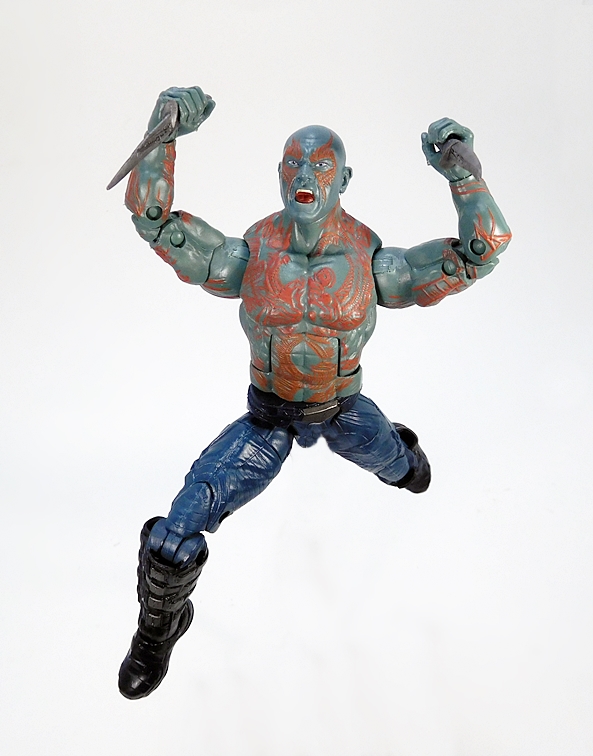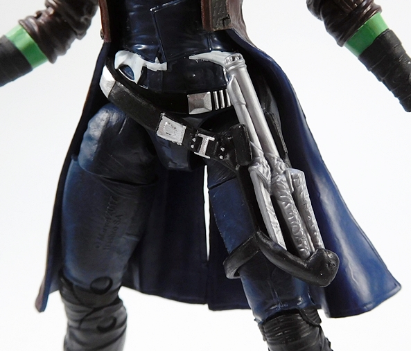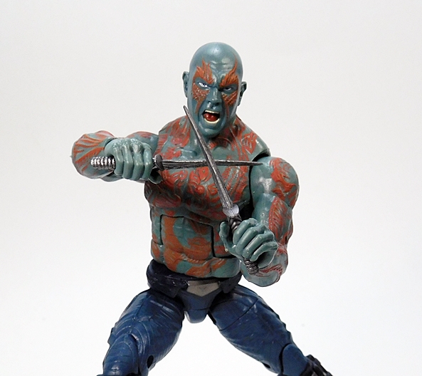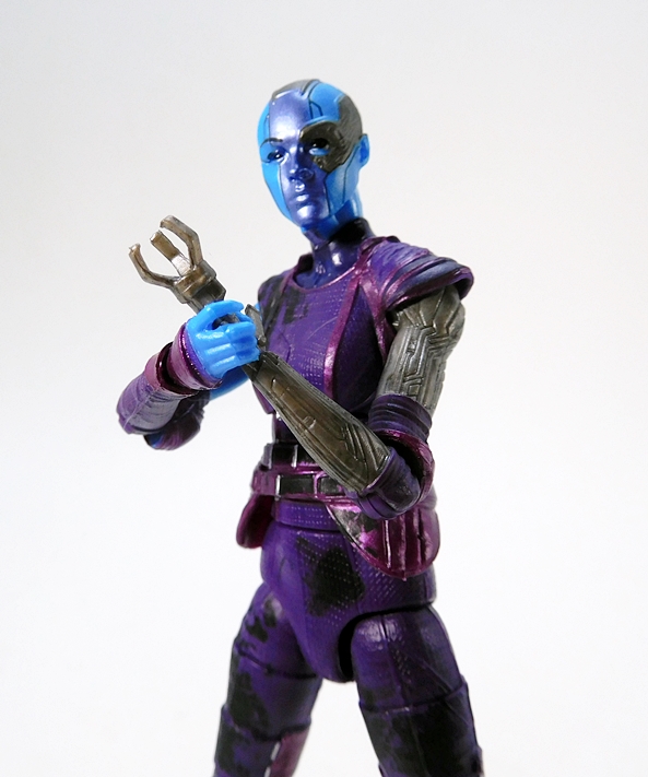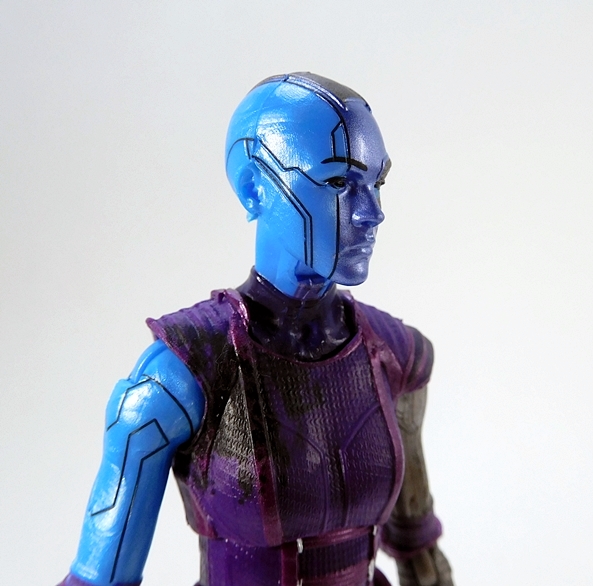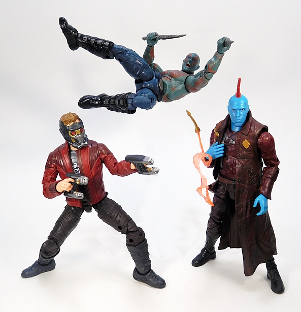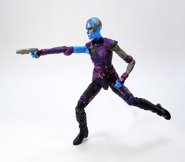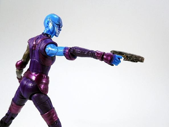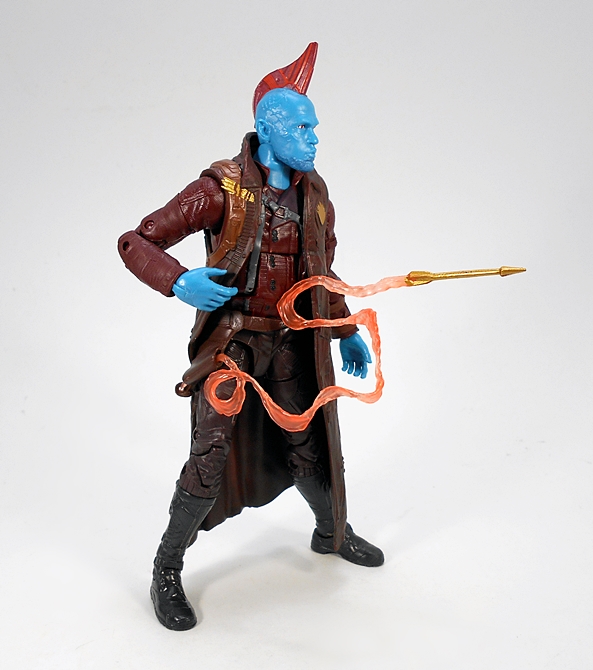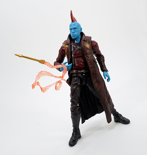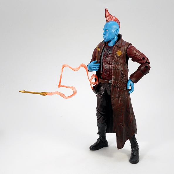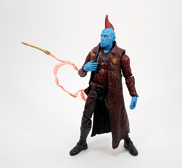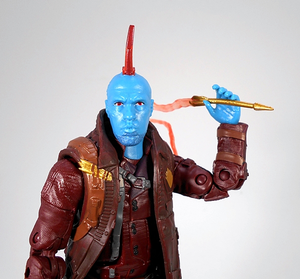 And yes, he comes with his fin, which is easily swapped out as both pieces are magnetic and both of them have sculpted and painted circuitry on the inside where it connects to his head. The fin is pretty much the key item for changing Yondu from a first movie appearance to a Vol. 2 appearance. And while I really do love the way the fin looks, chances are I’m going to stick with the look from the first film as it just fits in better with the Guardians on my shelf. Moving on to accessories… well, Yondu may not have a talking car like Zardu Hasselfrau, but he does come with a flying arrow.