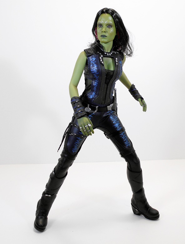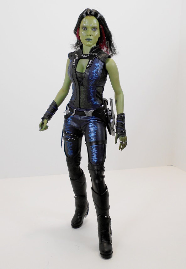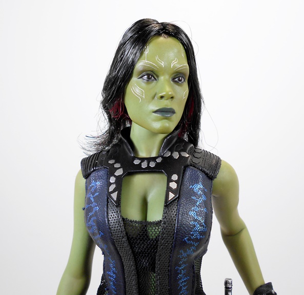 The portrait is excellent. If they really did invest all that extra lead time in the likeness, I think it paid off in spades. Once again the skin tone is spot on and the sculpted tatts look great. His eyes feature that eerie spark of life that I’m used to seeing in my Hot Toys figures. Alas, I think this is a character that really needed an extra portrait showing some emotion. If this were a Guardians Vol.2 version, I’d say a laughing portrait, but in this case, rage would have done nicely. Still, for someone like me, who tends to pose these figures in fairly subdued stances, this neutral portrait works fine in context with the rest of the team.