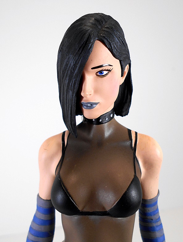 The portrait still looks great, and features Cassie’s hair cascading down and covering half of her face. She’s very pretty and I love the delicate curve of her nose into her more prominent upper lip. The paint for her eyes and lips is applied sharply, and yes… she’s wearing gray lipstick!
