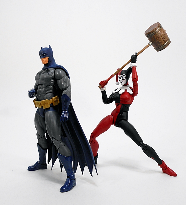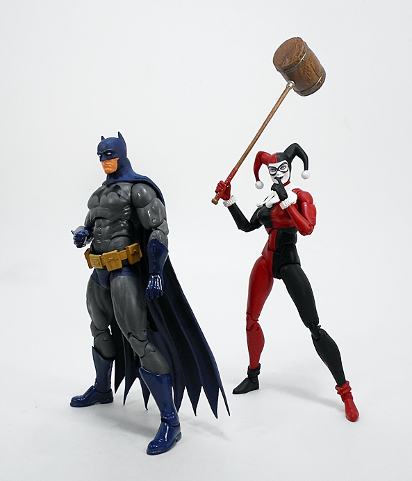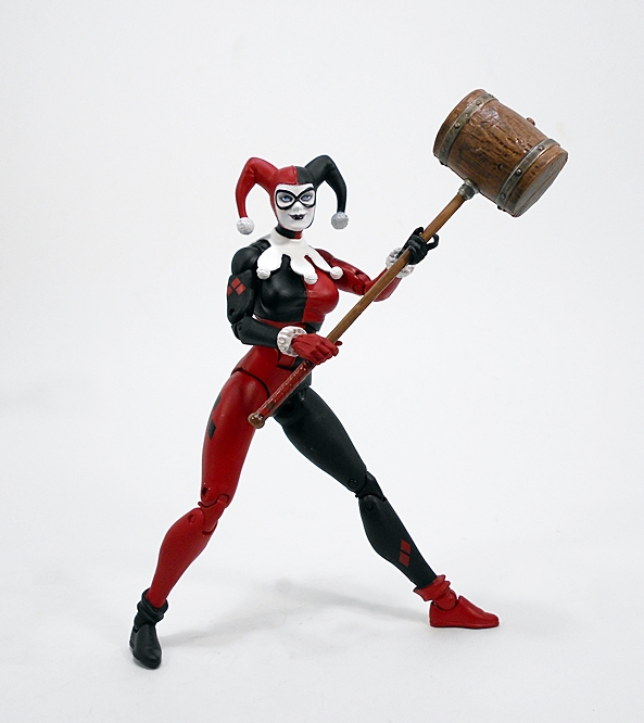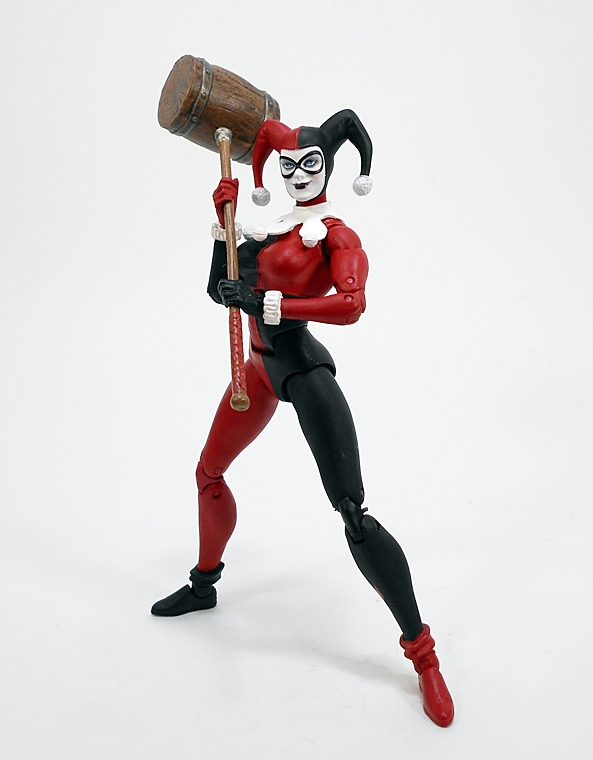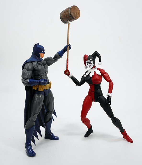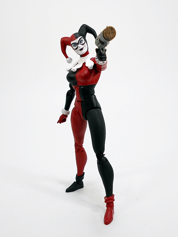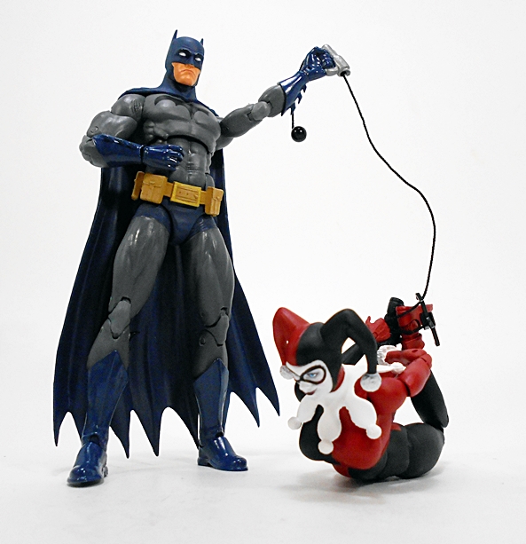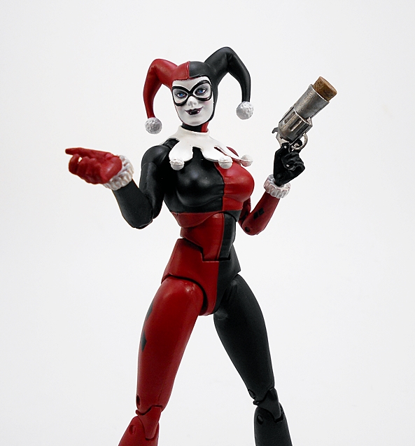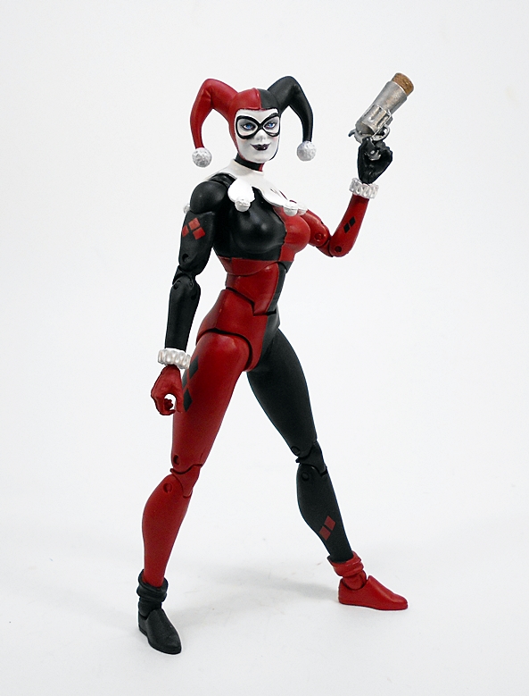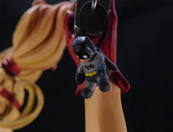 Her pop gun is beautifully sculpted and painted with a silver finish and black grips with a cork stuffed into the barrel. You gotta love the tiny Batman dangler that’s tied to the lanyard loop of the butt.