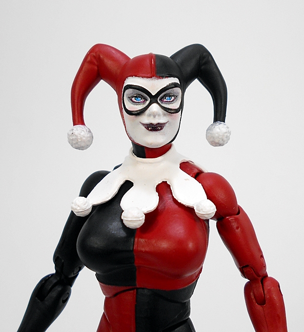 They also packed some great touches in the outfit include the Joker card that’s tucked into her left stocking and the Joker-style medal pinned to her jacket, some wing medals on her lapel, and stars pinned to her epaulets. The “Joker’s Wild” painting on the back of her jacket is a work of art all by itself. It makes me want to get a mirror to put behind her, because sadly, it won’t be visible when viewed from the front.