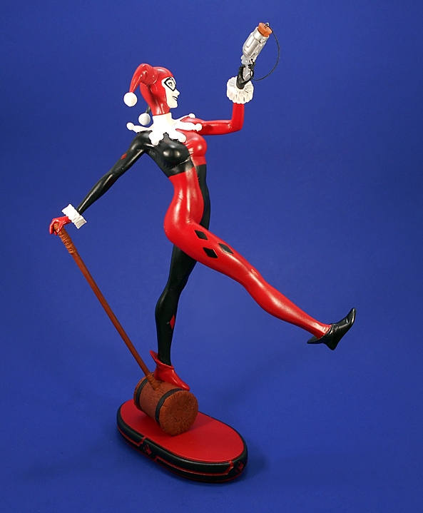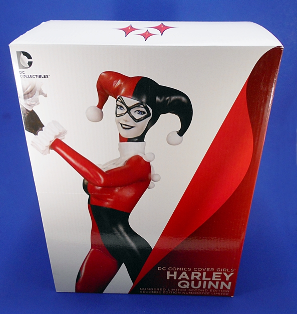The statue comes in a fully enclosed and mostly white cardboard box. It’s much bigger than the Cover Girls boxes, but very similar in size and style to the DC Designer Statues. In this case, the box also features a sticker indicating that it’s Harley’s 25th Anniversary. Harley isn’t quite in the Sixth-Scale range, but with the base and the one arm up in the air, she still measures over 12-inches tall. The statue itself is based off original art by Ant Lucia and the “Gotham or Bust” art print is available from QMx designs. I picked up one of the prints shortly after getting the statue and I’ll say a few things about it at the end.
