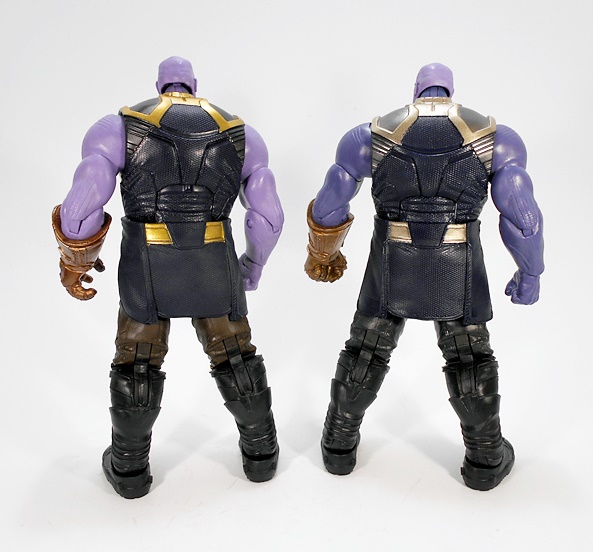Thanos’ golden gorget has a bit of a swirly pattern in the plastic and is sculpted to match the musculature in the buck. It’s more tight fitting around the neck and it stays in place, as opposed to the BAF’s which tended to flop all over the place. I really dig the painted gold straps that run under the arms. In addition to the simpler, cleaner look on this figure, I just can’t say enough things about the coloring on this figure. The lighter blue and the shinier gold really make the figure pop beautifully, like he’s jumping right out of a comic panel, as opposed to the dark blue and dull matte gold on the BAF. This is just an absolutely gorgeous figure!