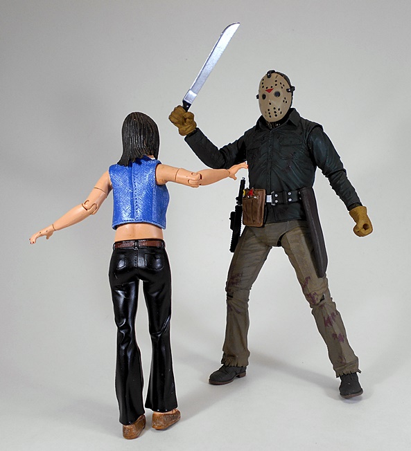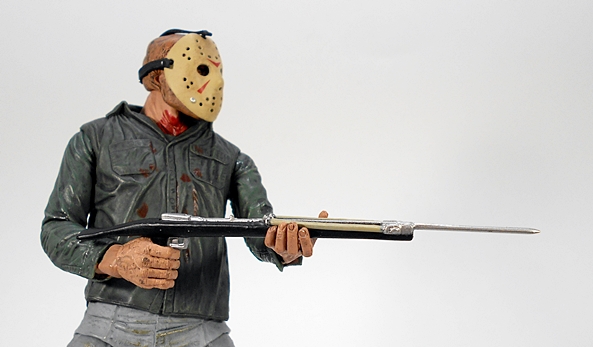 Wood Ax! I don’t even remember where Jason gets it, but he makes good use of it… twice! First, Russell gets ax to the face while his girlfriend is skinny dipping in the lake. Later, bitchy priss Melissa gets the same treatment right before the final showdown with Tina. NECA did a great job on this one. I dig how the wooden shaft gets bloodstained close to the blade. The blade itself also has a nice patina.
