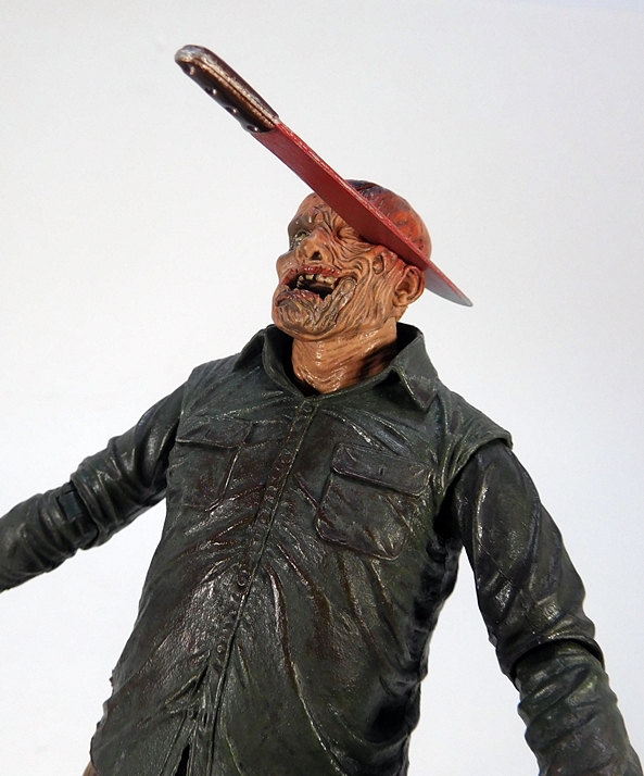 The marriage of NECA and Jason Voorhees continues to be one of my greatest joys of collecting. I want to go back in time and tell teenage me, watching these flicks on VHS late at night, that in the future Target will have a whole section devoted to 80’s Slasher action figures, and that I have eight incarnations of Jason standing proudly on my shelf. This version gave NECA a lot to work with and they totally hit it out of the park. Indeed, there’s just one issue I have with this release, and I don’t know how NECA dropped the ball on it. WHERE’S THE PARTY HORN THAT JASON STUCK IN KAREN’S EYEBALL??? Yeah, it would have been fun to get that in the box too, but all is forgiven! There’s still one of NECA’s Jason figures that I don’t have and that’s from the 2009 remake. I’ve only seen that movie once, but I remember actually liking it, so I’ll get to picking up that figure eventually.