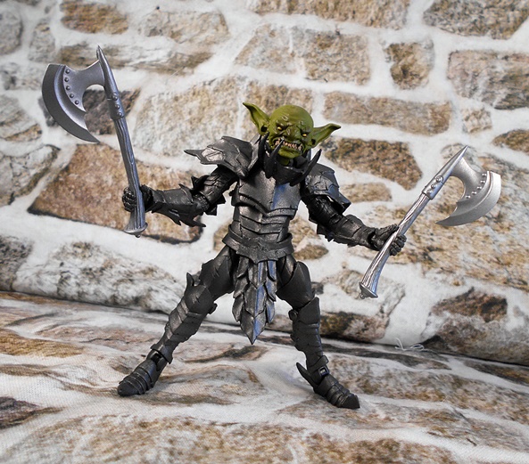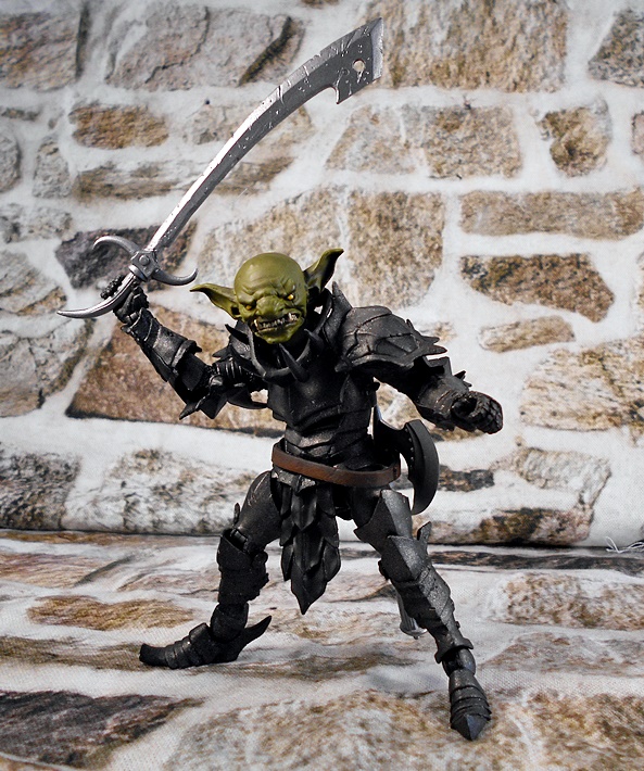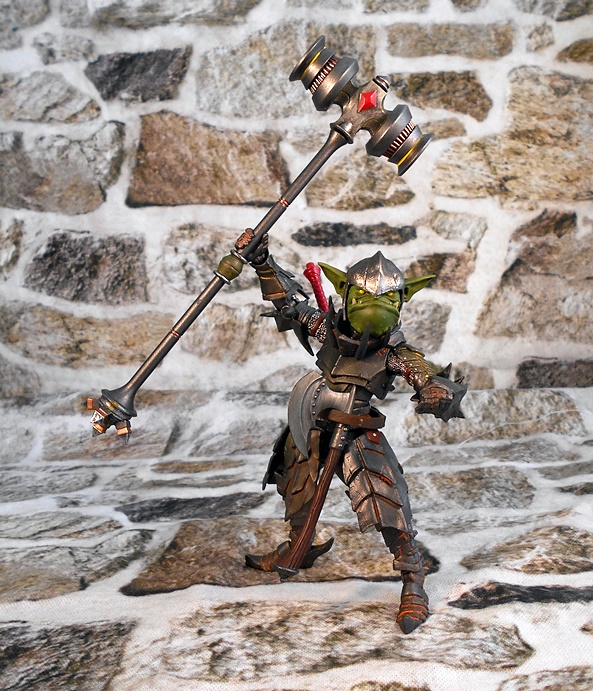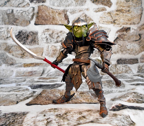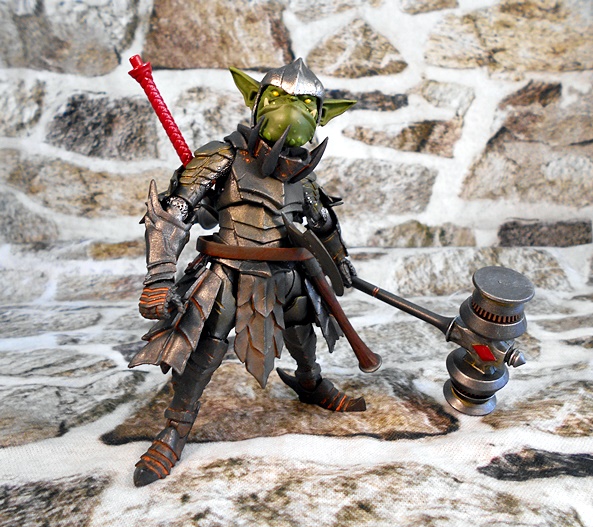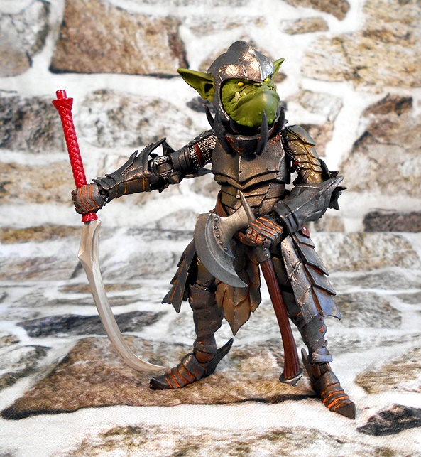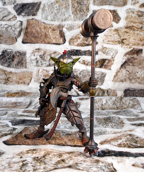 Because Slogg has plenty of chonks, his articulation is a tad more limited, but most of that comes from the range of motion in what are most of the usual joints. Rotating hinges are the order of the day, and they’re found in his shoulders, elbows, wrists, and lower legs. His hips are ball jointed, he can swivel at the waist, and his giant head can rotate left and right. But yeah, you do have to pop his dome every time you want to change the direction of his head. The arms are great, but the legs are mostly for positioning so he can stand. Although he really doesn’t have a problem in that department. Slogg also comes with two sets of hands: One set of accessory holding and one set of fists.